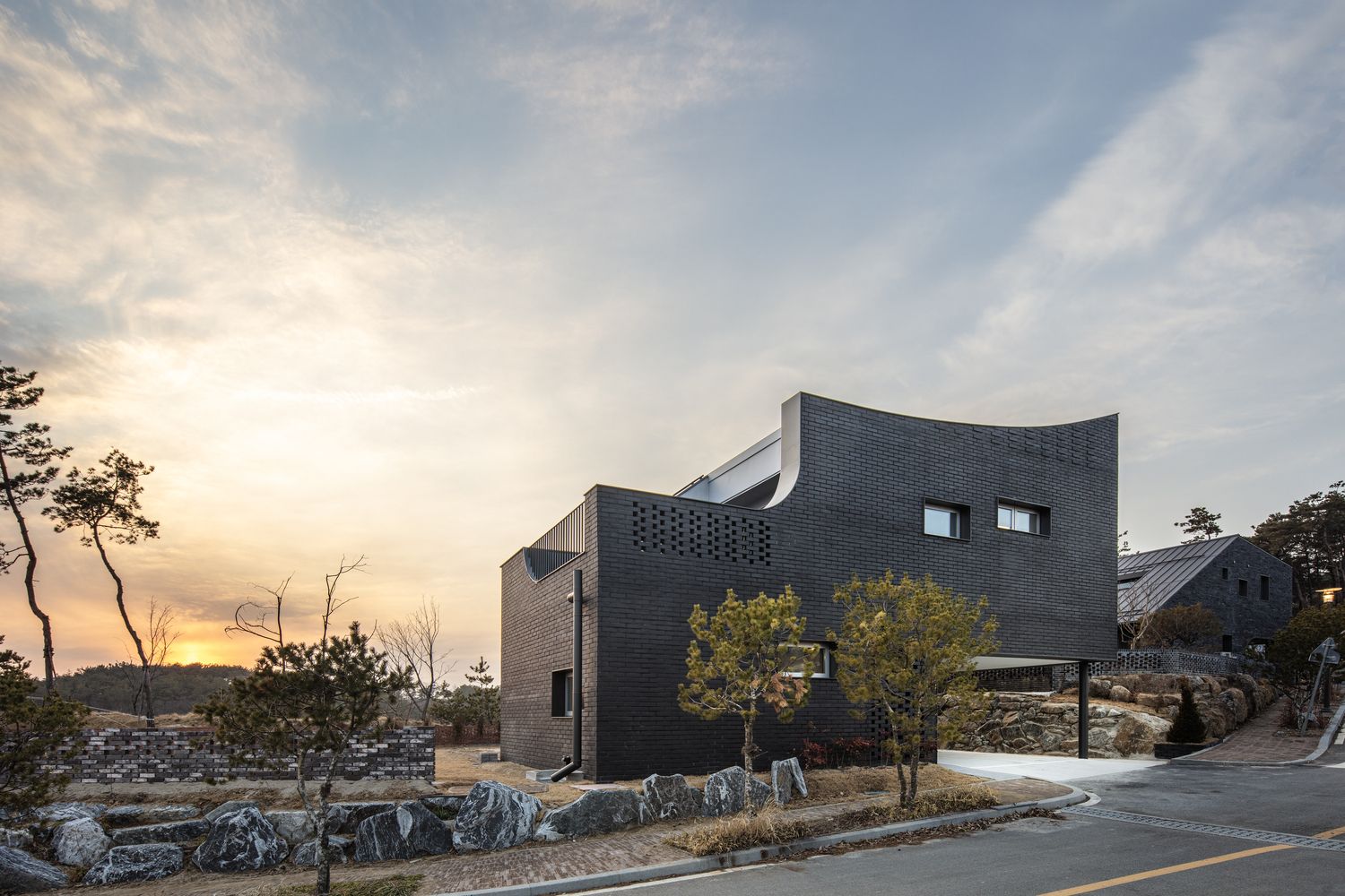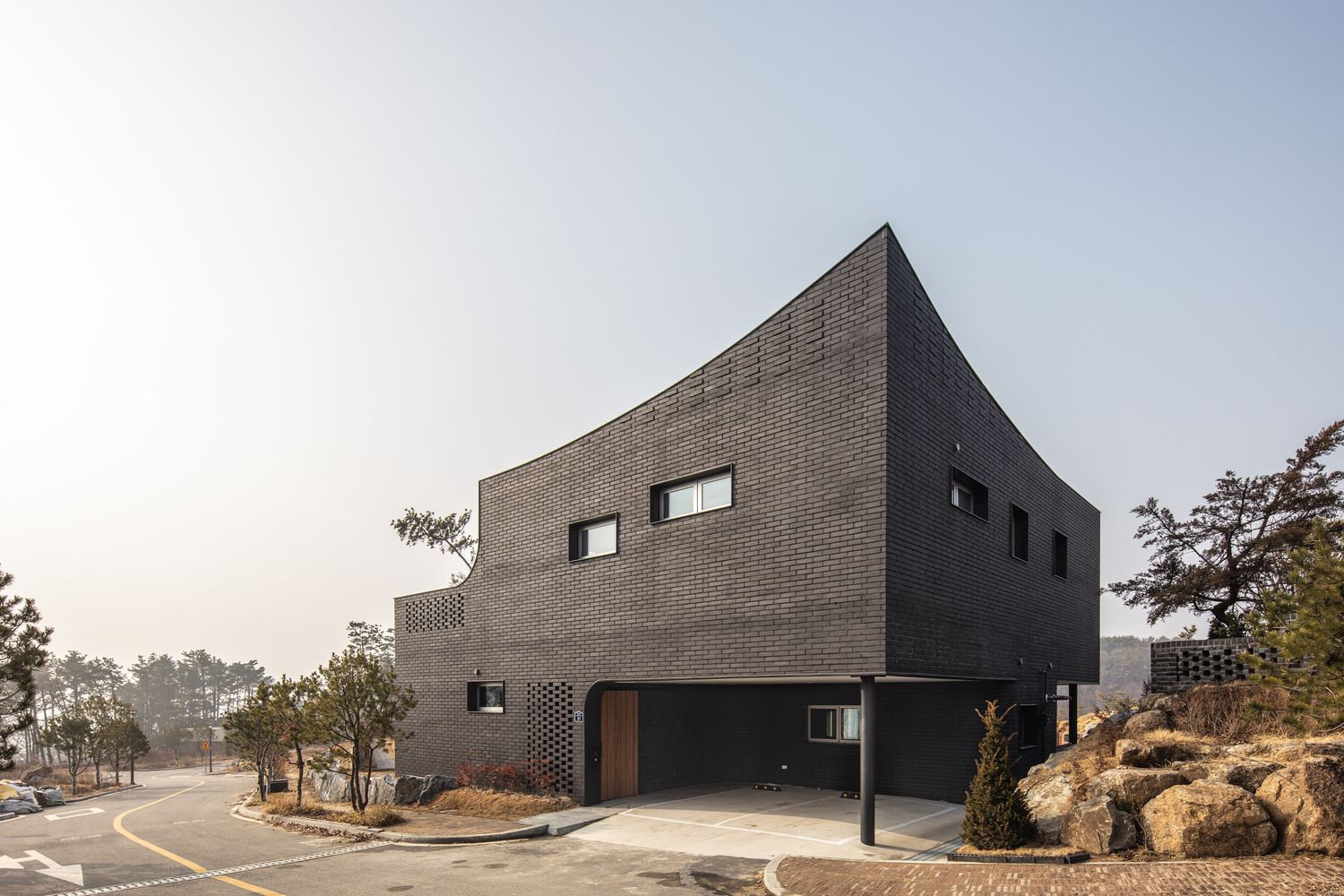 Wing House is located on the outskirts of Sejong City, the newly planned administrative capital of South Korea. The clients were avid gardeners and amateur arborists who wanted to maximize the inside/outside connections of the house.