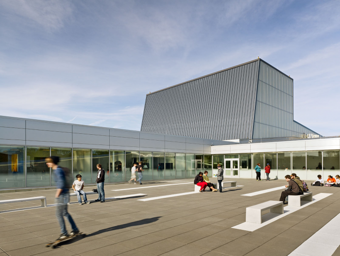 The project was launched with a unique innovative celebration that featured a 60-piece wind symphony and a architectural model created by the school’s ceramic students. The center is not only a place for students and faculty to learn and work on theatrical, dance, musical, film and digital arts productions, but also, it is a large theater when community will behold a wide range of performances. The architects wanted to make it a space for the whole school, breaking barriers between people’s different interests.