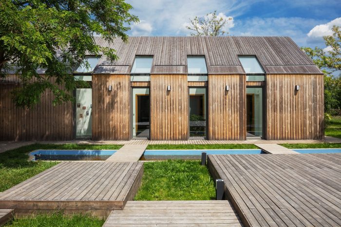 This modern farmstead is expressing the contemporary need for smart integration into an environment while extolling the traditional values that comes from the building’s folk inspiration.