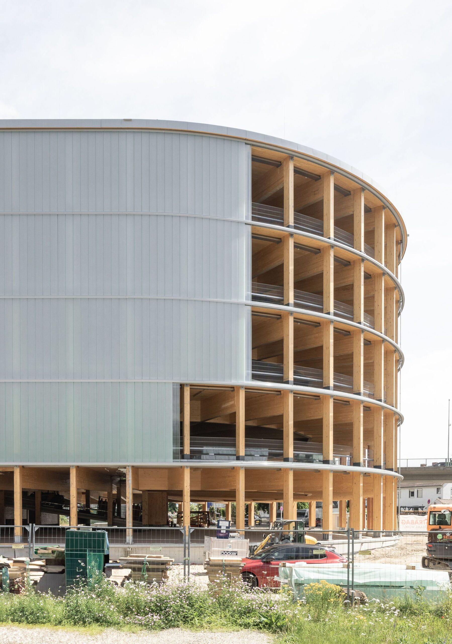 ”Wooden Parking Garage Wendlingen” Designed by the Stuttgart-based firm herrmann+bosch architekten, this parking garage sets new standards in multiple aspects, combining high standards for design, user-friendliness, and sustainability. The parking garage is located on an important pedestrian axis between the planned OTTO quarter, which is being created from the industrial monument of the former Heinrich Otto & Söhne weaving mill, and the Wendlingen train station. With 349 parking spaces on 5 levels, it replaces the existing parking spaces on the “Behr-Areal”. It also promotes environmentally friendly mobility thanks to its convenient location near the train station, numerous e-charging stations for cars and e-bikes and secure parking facilities for 200 bicycles. Thanks to its Park+Ride function, the multi-storey parking lot also helps to relieve traffic congestion for the entire Stuttgart region.