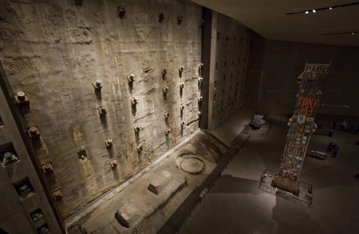 Dating back to the 1960’s, the slurry wall was highly acclaimed as engineering achievement. At 4 feet thick and approximately 100 feet deep, the construction piece withholds the pressure of the Hudson River – even after 9/11, when a stretch along Liberty Street shifted more than 10 inches. A portion of the slurry wall can be seen inside the National September 11 Memorial Museum, where it was left exposed due to its emotional significance.