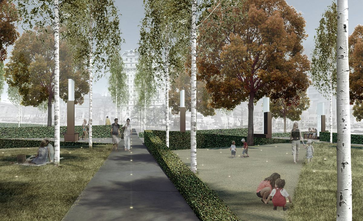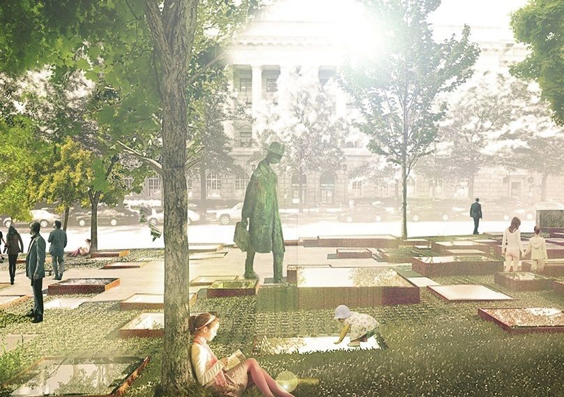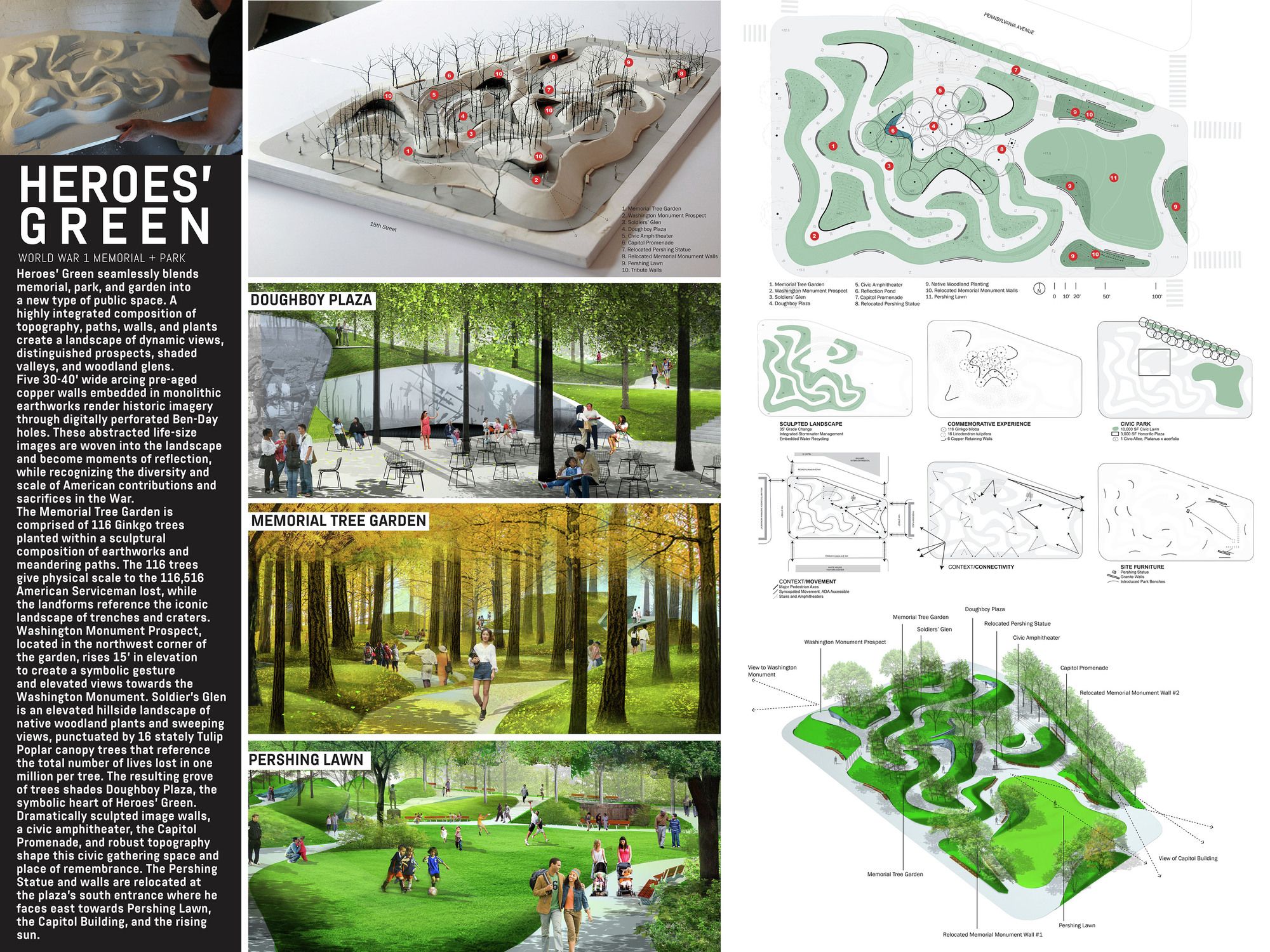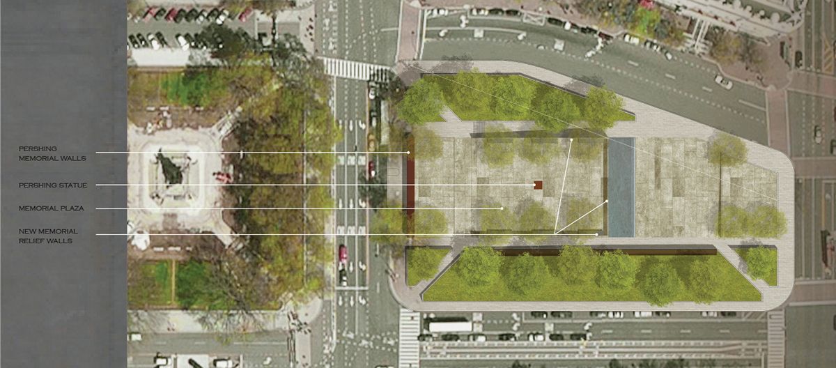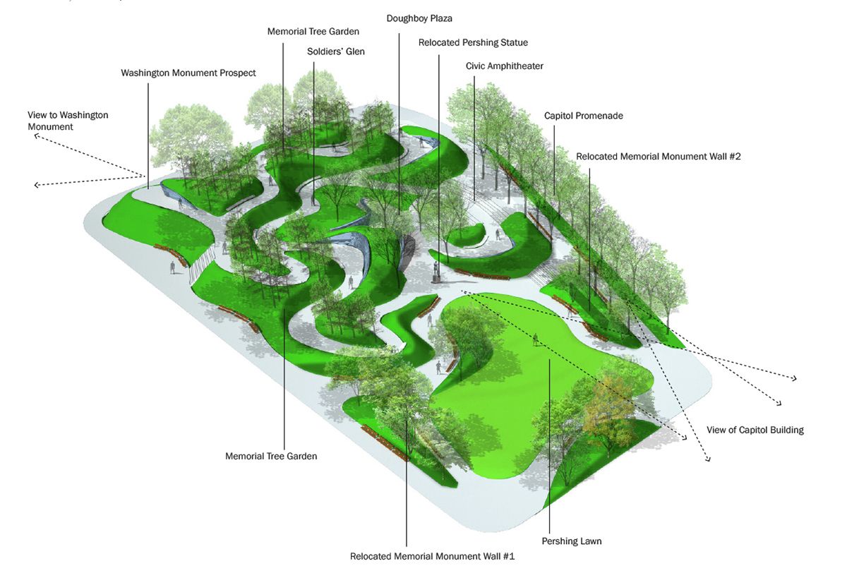 The proposed World War I Memorial by KAMJZ takes a unique approach blurring the lines between a park and a memorial. Over the past hundred years multitudes of memorials have been designed and constructed as traditional statues or forms creating one element that represents an entire event in history. By encompassing Pershing Park KAMJZ has shown the immense impact that WW I has had on the American society. While the design is subtle enough to not over power the existing memorials.