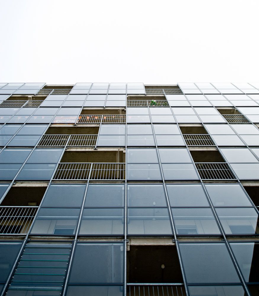 The Spartan gallery flat becomes acceptable where each gallery is given a different perspective. By changing window positions, balcony sizes and varying balcony materials, the different flats acquire their own character. With the party walls constructed 8 cm thicker than structurally necessary (for sound insulation) it became possible to use this extra thickness for the connection of the cantilever trusses without having to increase the weight of the load-bearing walls. When the project was completed, it was realized that the social housing project was with the lowest building-costs in Amsterdam . Almost 10 years later, averagely 2-3 touring-cars and numerous taxis and rent-a-bikes with architectural tourist now visit the outskirts of the so called ‘western garden cities’ to see the hanging houses of Amsterdam.