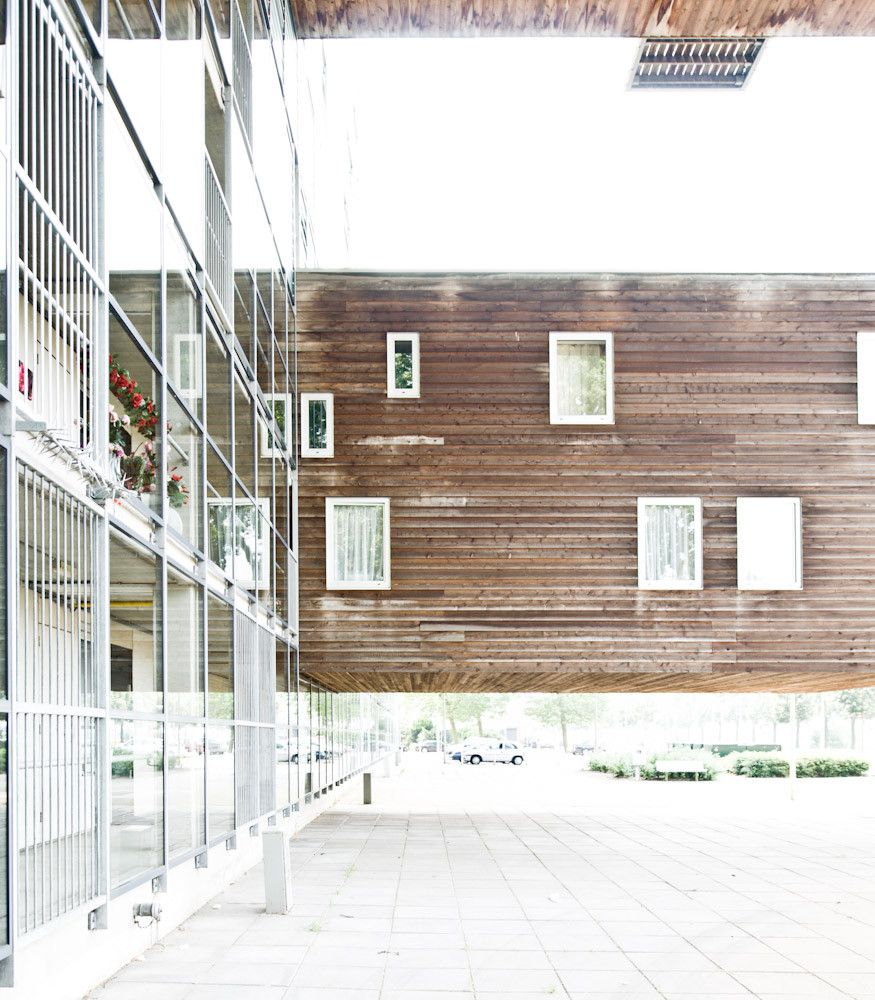 The main block features a more simple layout of seemingly random placement and sizing of windows and balconies on the southern facade. This is said to mimic the composition of the opposite facade but on a smaller scale. The current situation of the Netherlands has allowed many young architects to provide fresh and inventive ideas without having to prove themselves beforehand, which has created an optimistic belief in human imagination and creativity.