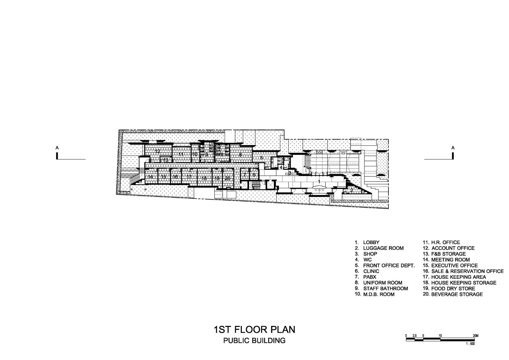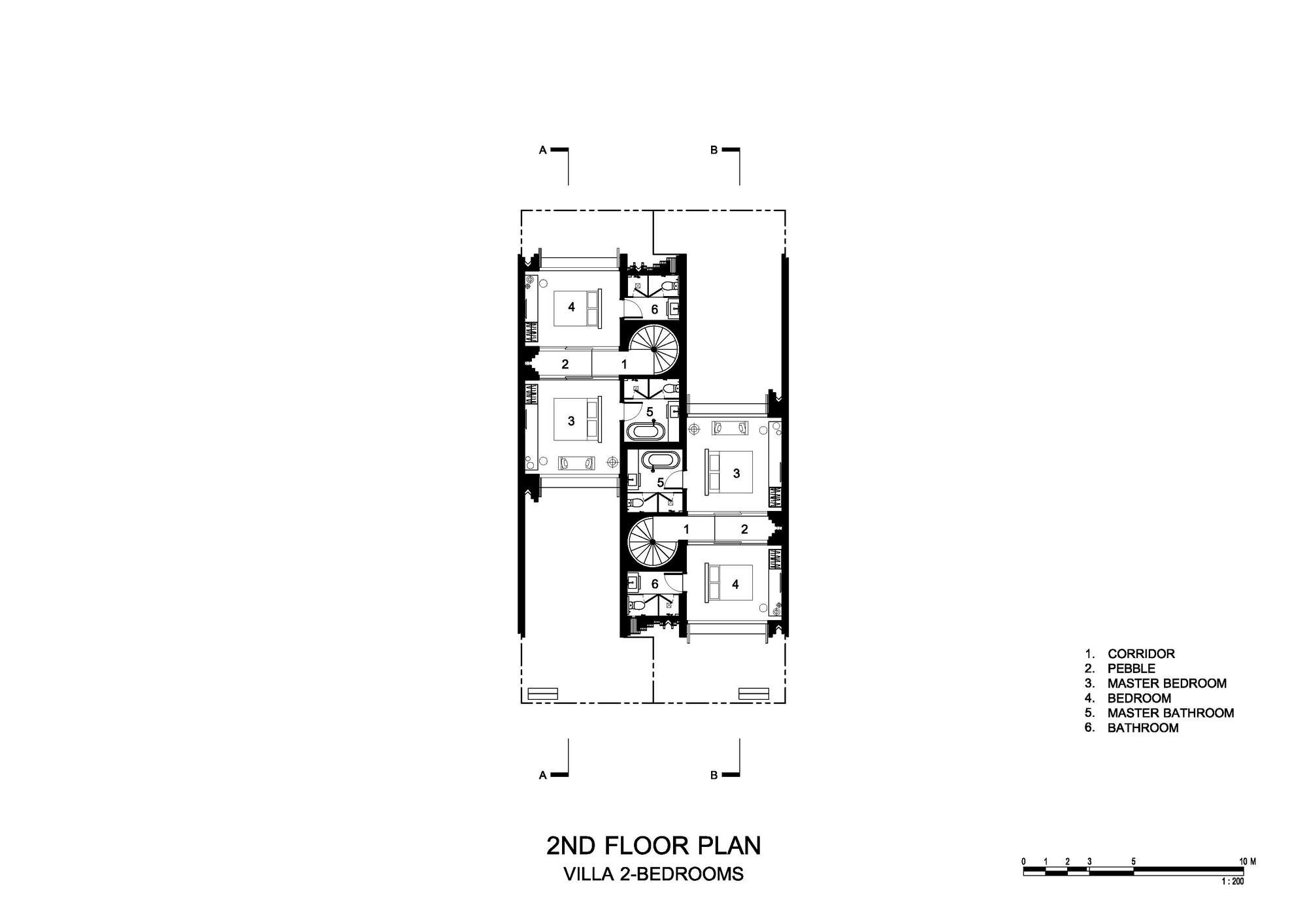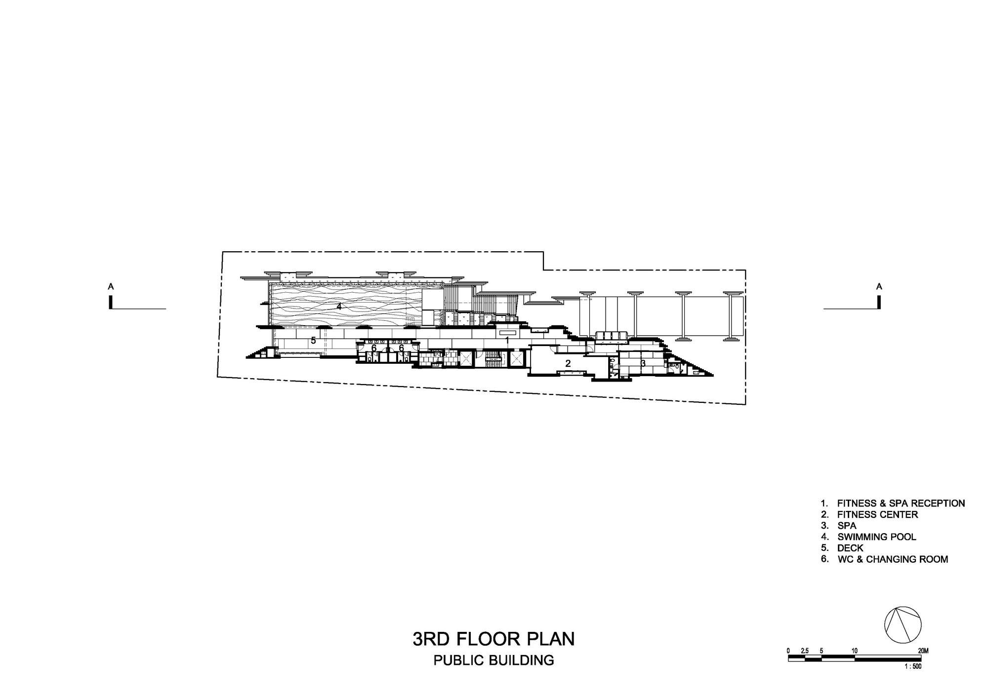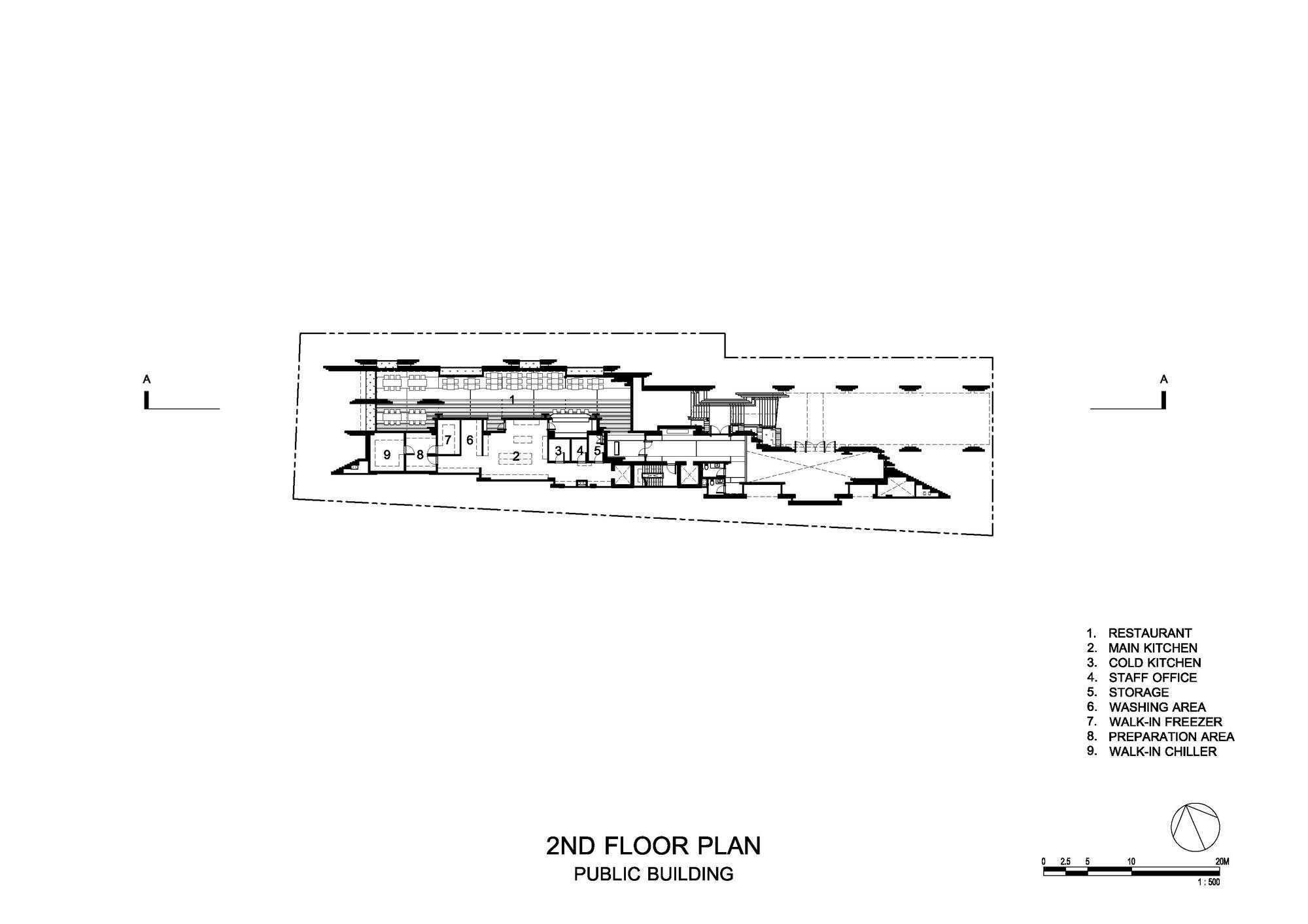 The site has a mild sloping contour with 500 meters offset from the beach line. Upon arrival, there is a monolithic cliff-like 3 story building with escalating landscaped steps, a club house with an arrival lobby, the back of house at ground floor, a restaurant at second floor, and the main pool at the third floor. These facilities were raised to bring the guests to the elevation where they can thoroughly enjoy the scenic sea view. The villas are arranged following the existing slope with minimum cut and fill operations to allow for the second floor of most villas to accommodate the ocean view.