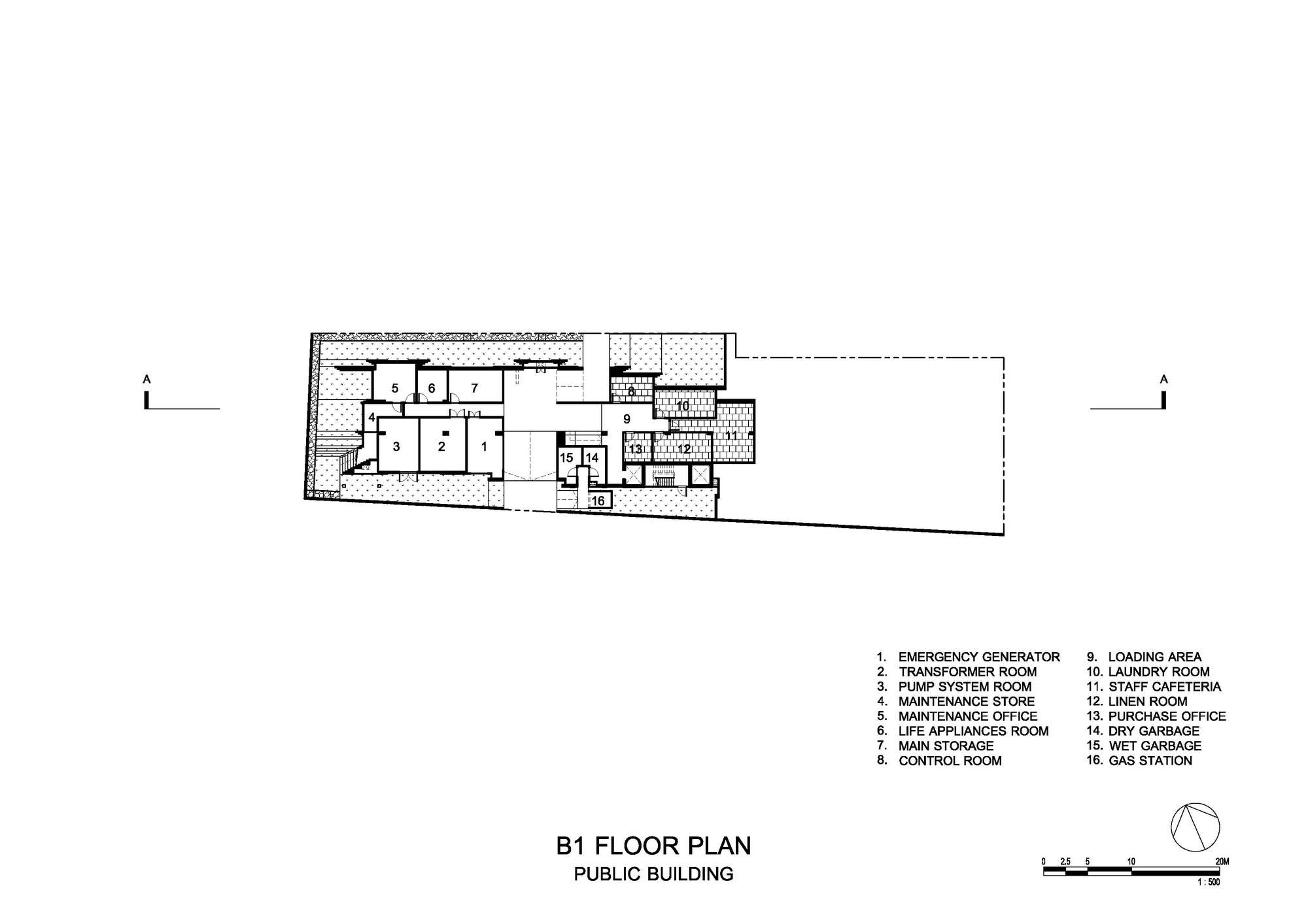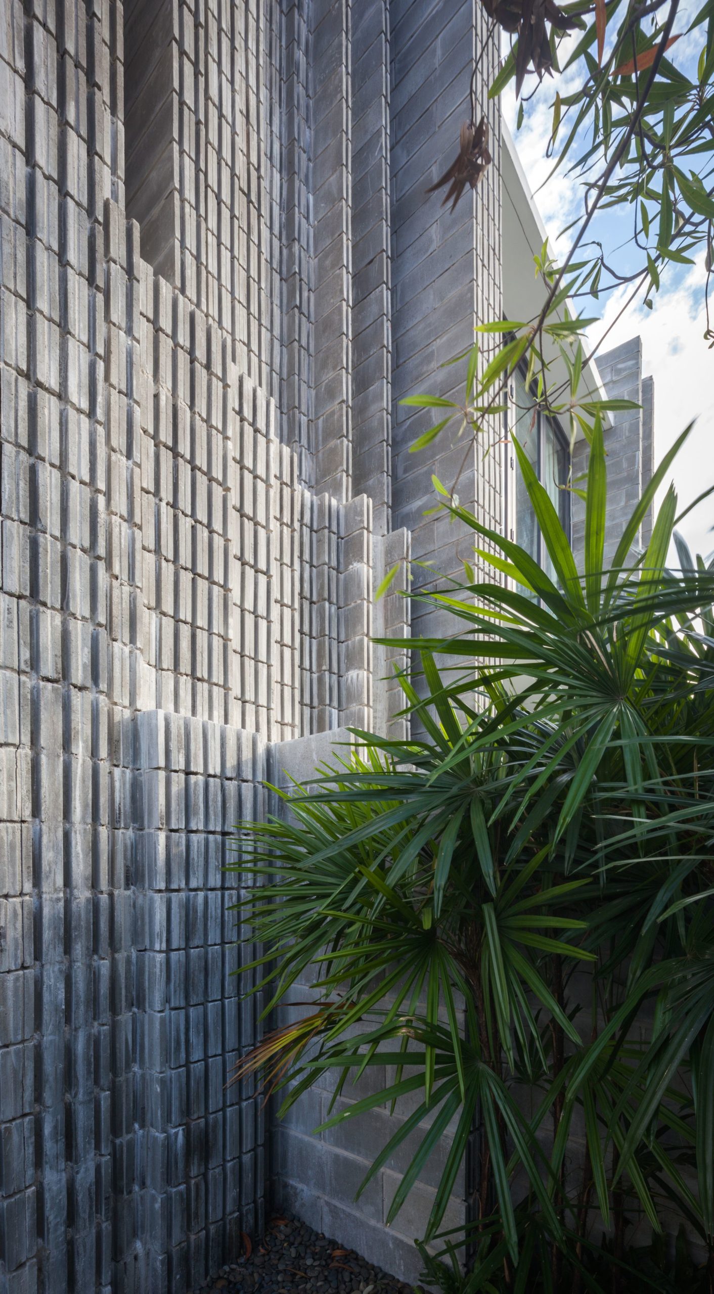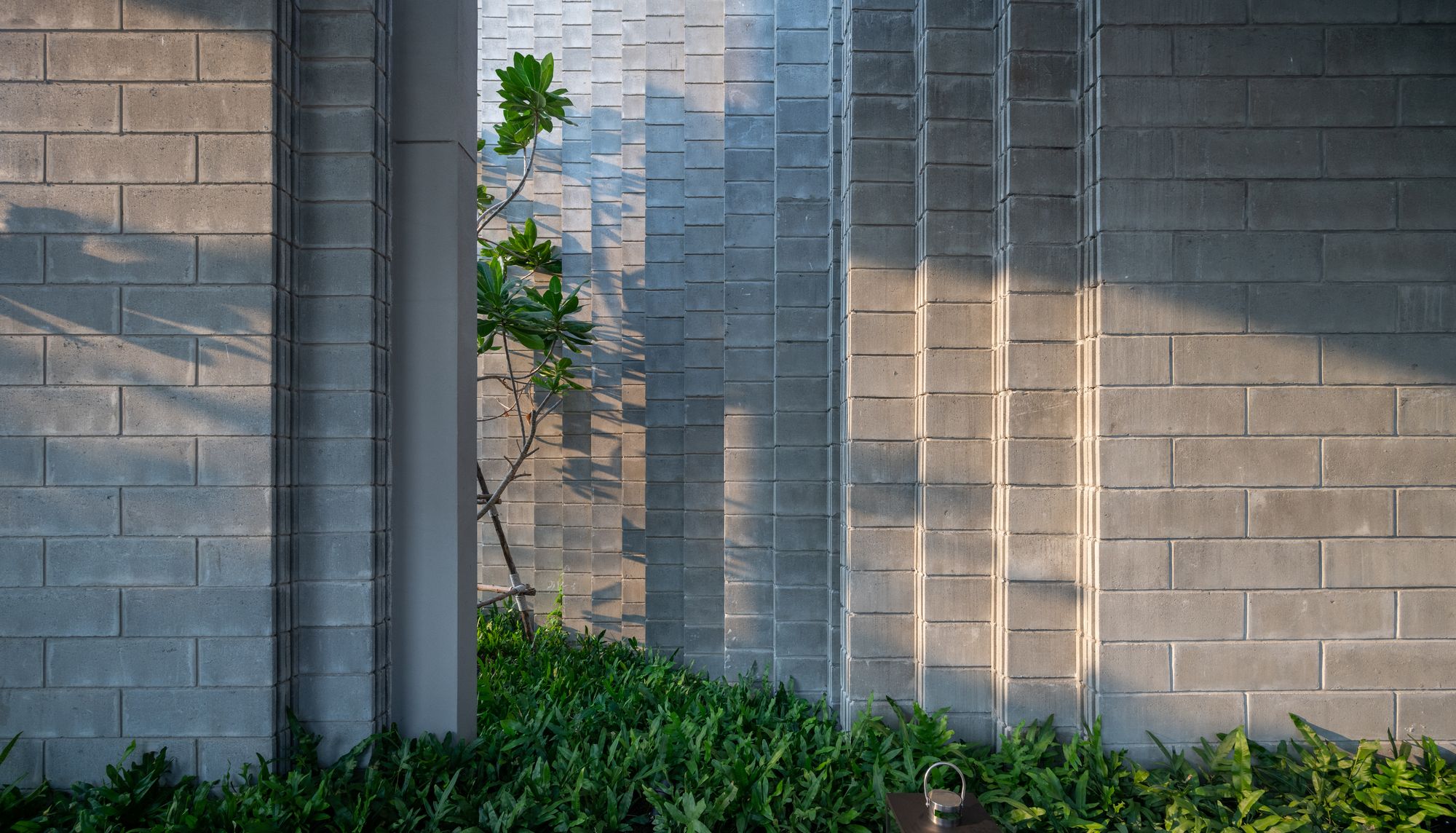 While the service area is treated as solid cliff-like walls, it is constructed with local concrete blocks with customized edge profile forming the tapered front façade of doubling also as an exposed rain waterway, connecting roof gutter to on ground landscape site drain. This block wall was developed into the larger and deeper walls incorporating all the services, lift cores and resting areas of the club house. The overall architectural design aims to prove that simple tectonic and natural mechanisms can be appreciated when highlighted properly.