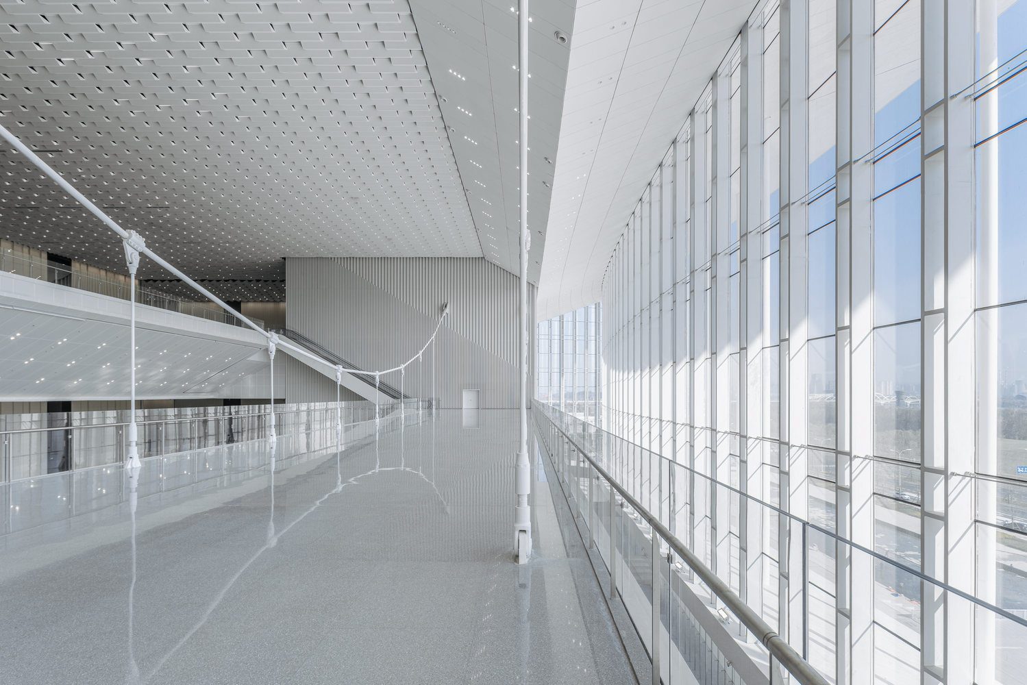Situated on the eastern part of the site, the conference center‒with a total floor area of 128,000 square meters above ground‒offers conference, exhibition, and multifunctional facilities for international forums, as well as for bilateral and multilateral summits, and thus is the largest integrated conference center in the north-west of China.