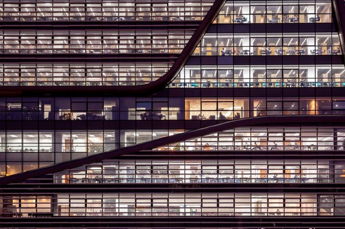 The voids not only serve as a link within the building but also without as they are functional. The interior spaces of the building interact with the south summer winds through the void on one of its southeast side. This interaction provides for natural ventilation during these hot summers. The green roof system is also a sustainable strategy employed with horizontal louvres on the facades to control light and solar gain.