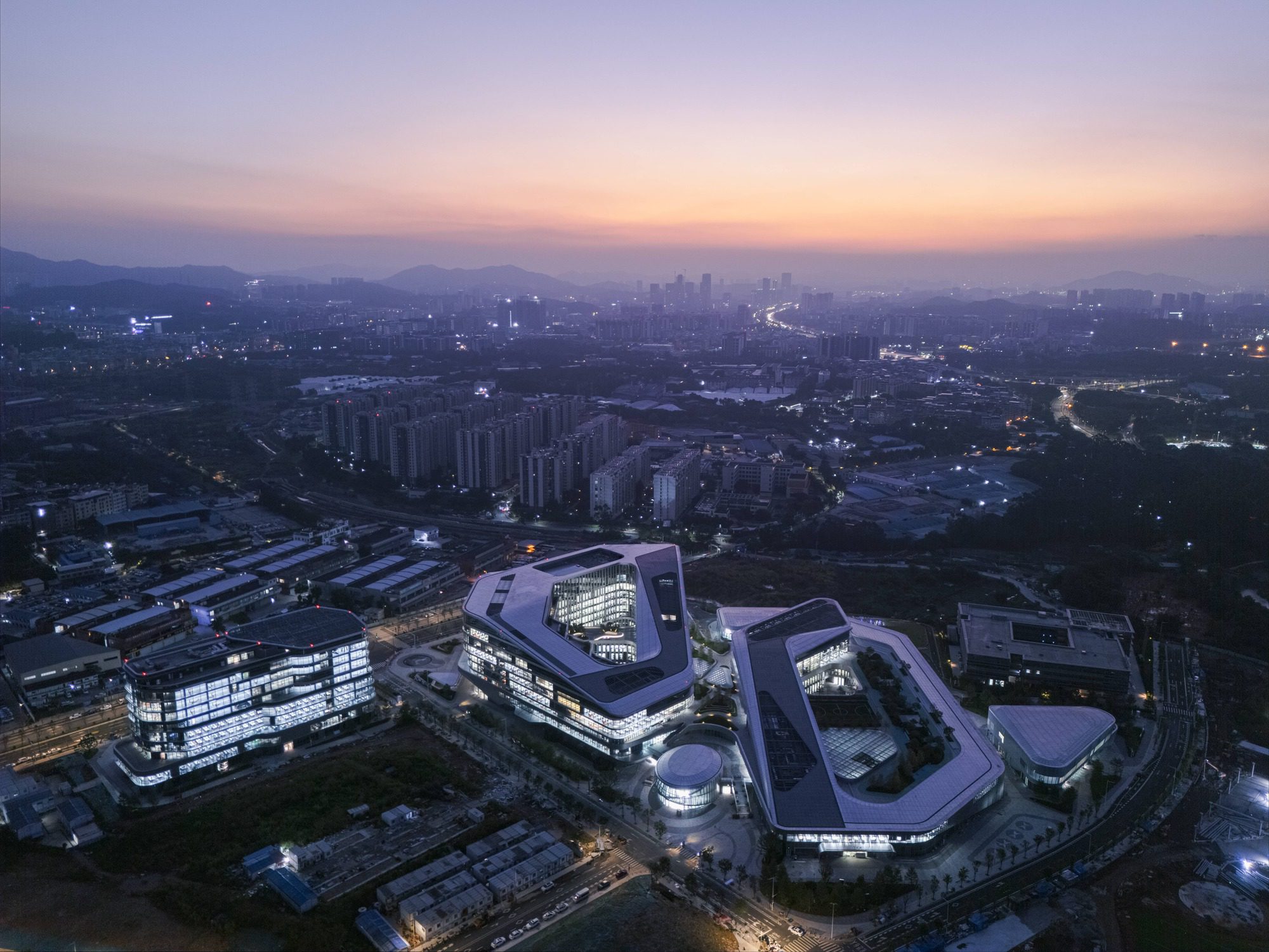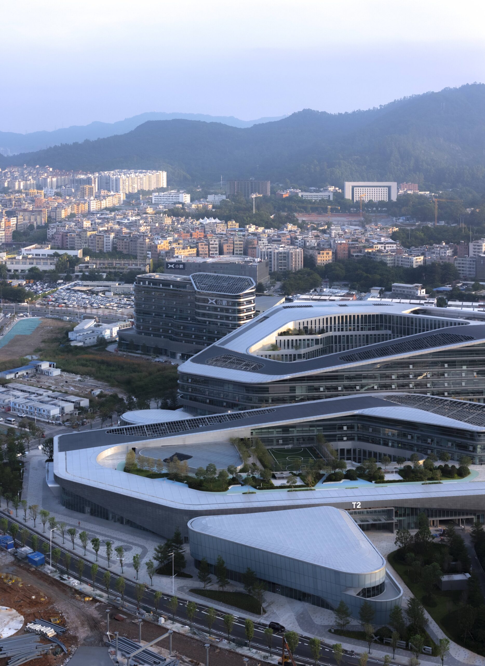 The architectural concept design for the project was completed by Sun Wei and his team at weico architects, with the construction document design handled by CAPOL International. The architectural design fully utilizes the surrounding conditions: two fluid, large-scale office courtyards are connected at the center, and the building mass leaps upwards from south to north towards the distant mountains, creating a simple, fluid, and integrated volume.