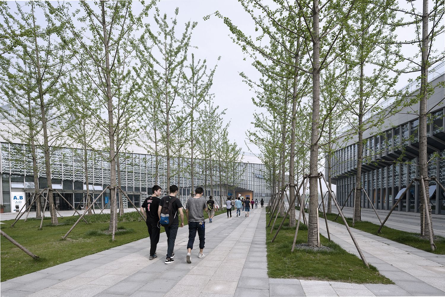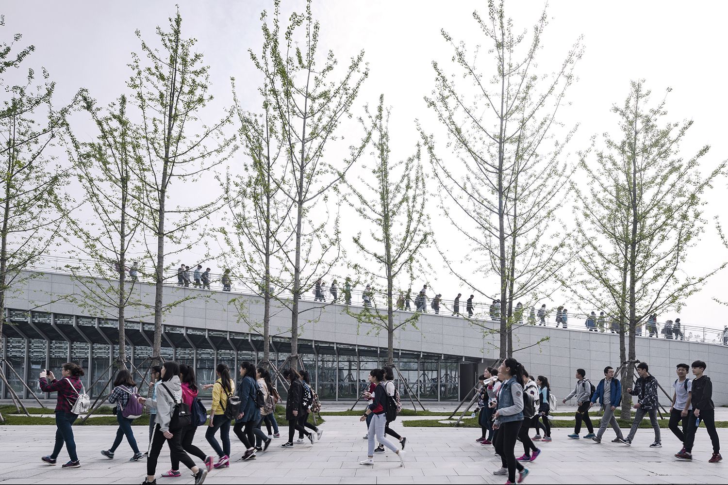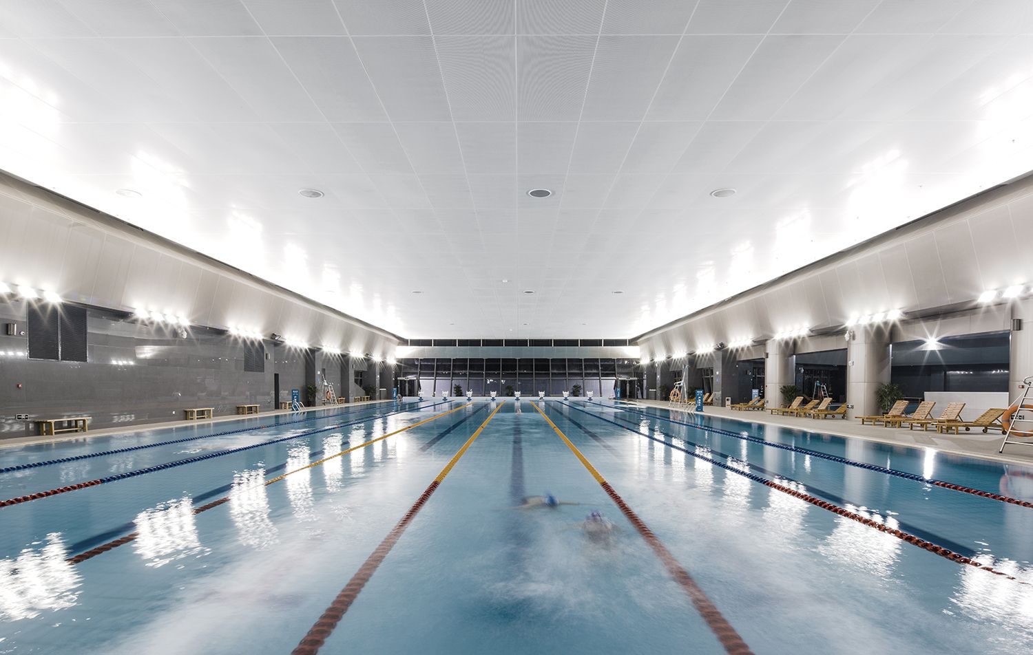 Yangzhou Li Ning Sports Park is built based on the principle that integrates modern city functions with traditional historical culture, thus creating sustainable modern sports facilities that reflect the contemporary lifestyle. Located within the Sports Park in Guangling New City, the project has broken the building volume into pieces by adopting the design philosophy of landscape architecture. As an integral part of the park, the buildings reflect Yangzhou’s spirit of including both mountains and water in traditional parks by combining the artificial “built mountains” with the “natural water” in the area, which provides the city with a vibrant center with its sports culture. In recent years, China’s sports industry has gradually transformed from prioritizing competitive sports to developing public sports. The design has kept up with the change, avoiding simplification in function deployment. Modern leisure sports functions such as rock climbing and trampolining have been introduced on the basis of traditional sports activities. Meanwhile, relevant derived functions have also been introduced such as sports training, health maintenance, and rehabilitation, and catering services, offering the community an area for complex activities.