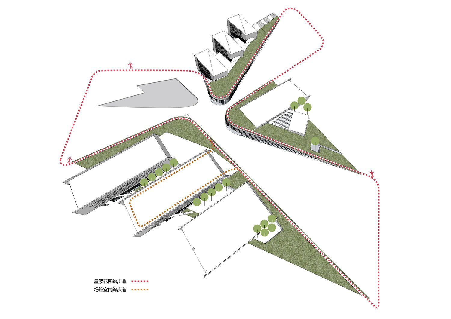 Learning the lesson from previous cases where some stadiums ignored the operation after sports competitions, the design has been focused on the relationship between function and operation streamline in terms of the space, which promotes the consumption in related businesses such as rehabilitation and catering through the crowd from the stadium. At the same time, it also focuses on the multi-function and openness in using internal and external space, thus improving the utility efficiency and avoiding idleness. The structure modeling has achieved the best cost efficiency by reasonably using the concrete structure and large-span steel roofing system according to the span of the space. The traditional Yangzhou paper cutting techniques have been adopted in the building style, where the landscape was cut to a concave-convex effect on the ground. The convex parts are where the buildings are built while the concave parts become multi-function squares. The combination can be seen through the walking and run lanes indoor and outdoor, bringing a spatial sequence experience with a layered structure and rich visual points.In the planning, the site water system has been used to create a rainwater collection and drainage system and combined the landscape design and buildings, the natural landscape garden effects have been achieved; the earth-sheltered architecture improves the energy efficiency of buildings, and makes use of the roof space, which improves the green coverage in the area; the design has taken into consideration the features of public sports activities, making use of the natural light to a maximum effect and enhancing the natural light induction by the roof.