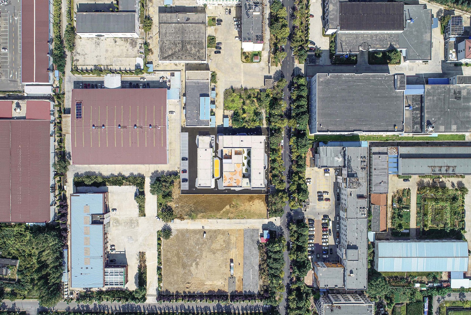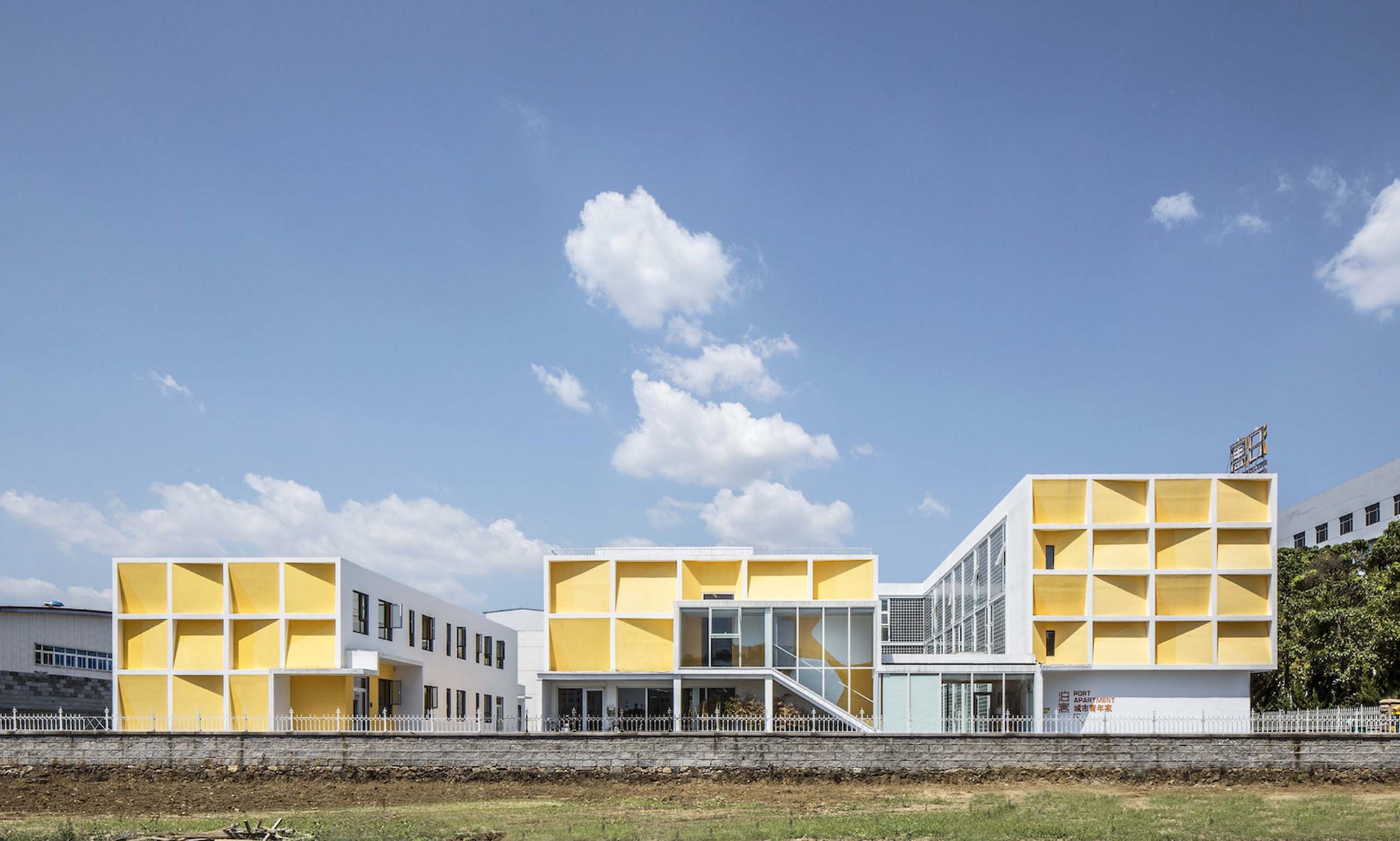 Yantai Chunhui Road Port Apartment is located in Laishan District, a place originally surrounded by educational institutions and former light-industries, there are some universities around such as Yantai University, Shandong Technology and Business University. The recent urbanization has made this area gradually become the heart of Laishan District, with most of factories moving away, leaving many vacant industrial buildings and warehouses. This project is right at the regenerating former industrial area, there were three buildings originally on the site, and the design mission was to transform the industrial space into a sharing living community for young people.