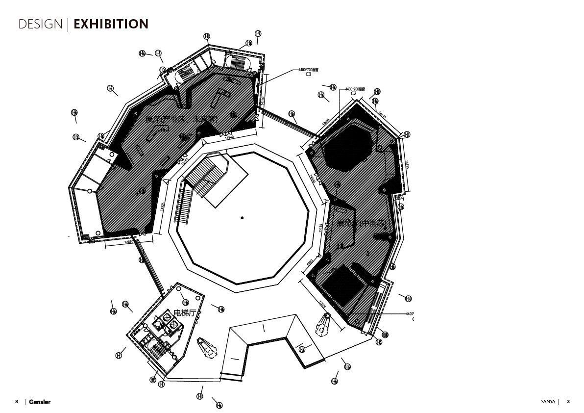 To support the building’s function as an exhibition and promotion center, Gensler’s design team created a unique user experience incorporating three ideas—the “pre-show”, the “show”, and the “post-show”. Before going inside for the exhibitions and events, visitors are welcomed to the building by a plaza, where dynamic routes swirl around the building like waves with lush gardens filled with indigenous plants. The elevated structure connects the outside and inside seamlessly. After the events, people can meet and gather in the central courtyard before departure.