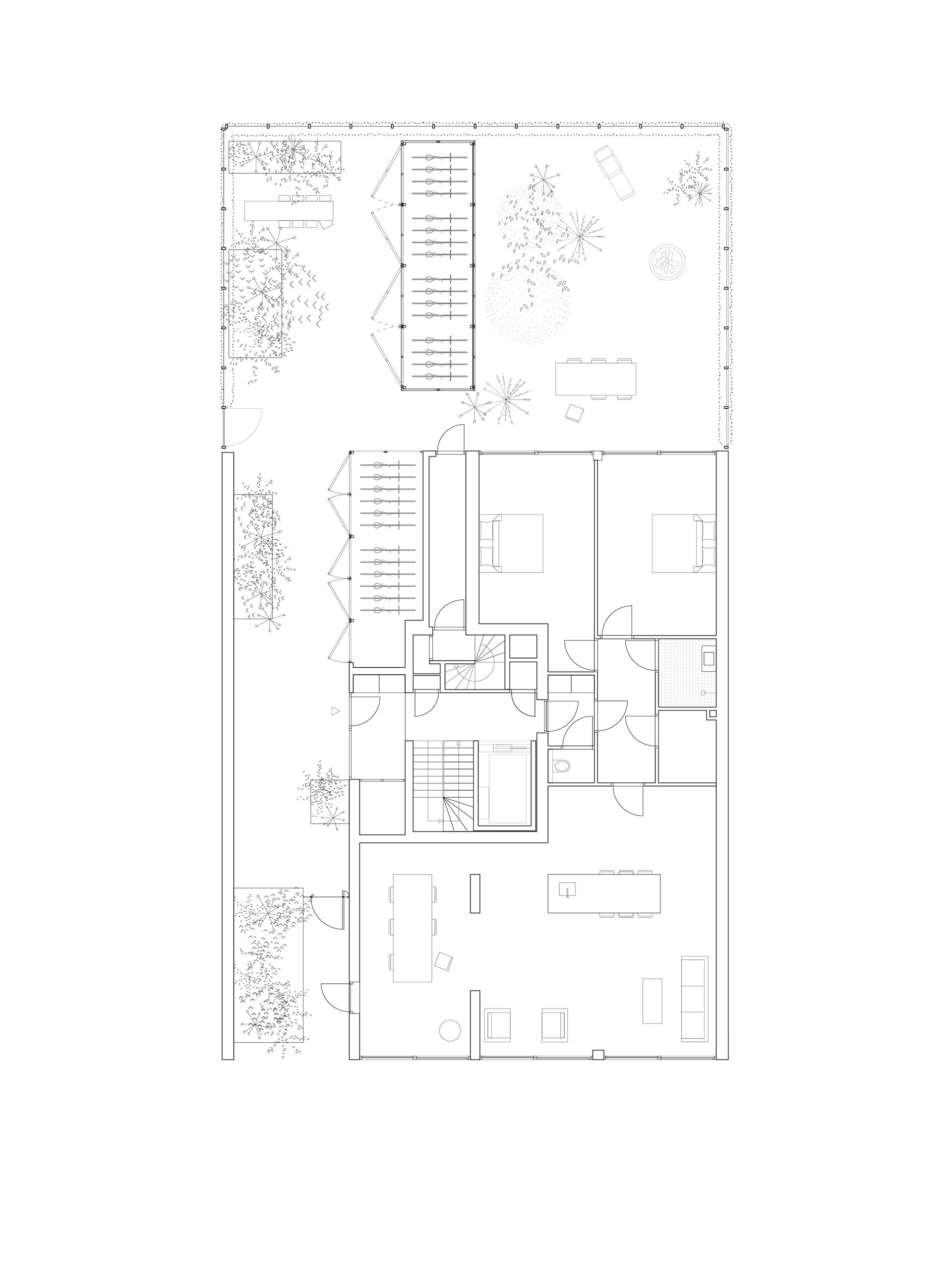 Each outdoor room adjoins a generous, shared garden, which changes position on each floor. The gardens contribute to cooling and air purification and attract insects and butterflies. Together, the greenery and the focus on comfort turn the outdoor rooms into the favorite places in the house.
