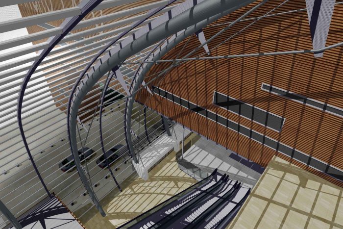 The 45-meter (150-foot)-high center will boast a 25,000-square meters (270,000-square-foot) contiguous exhibition hall, 5,100-square meters (55000-square-feet) of meeting rooms, a 200-seat fixed-seat auditorium, a 900-seat banquet hall, and a large glass atrium. The super structure will feature a unique rain screen system on the roof that will reflect natural light during the day, and create a soft glowing form at night with minimal use of artificial light. Qiao Zhang, a partner at 2DEFINE, describes the building as a, “Significant green development in northern China, and a showcase for business development along the Bohai Sea. This building is planned to achieve a LEED certified rating and become a new symbol for the city, an important and growing export center.”