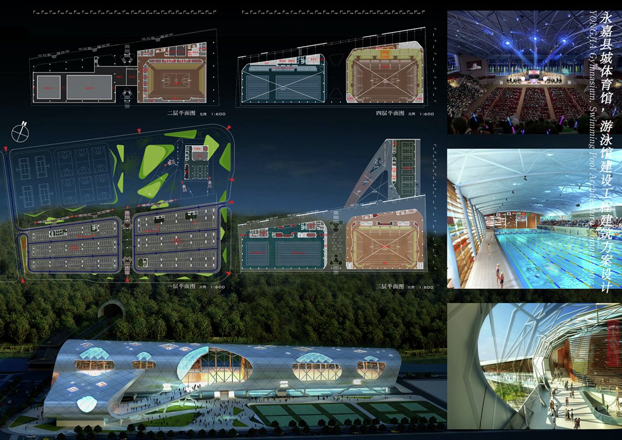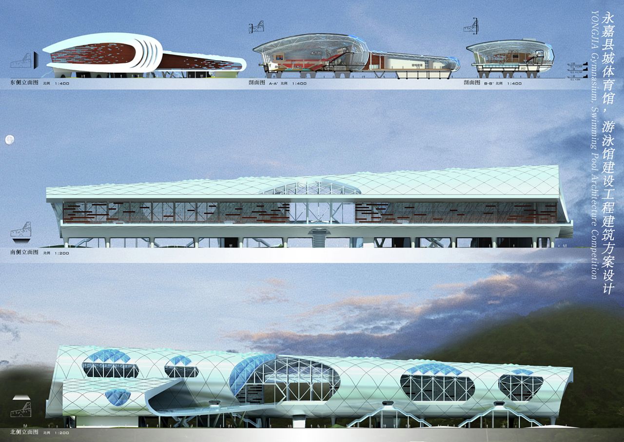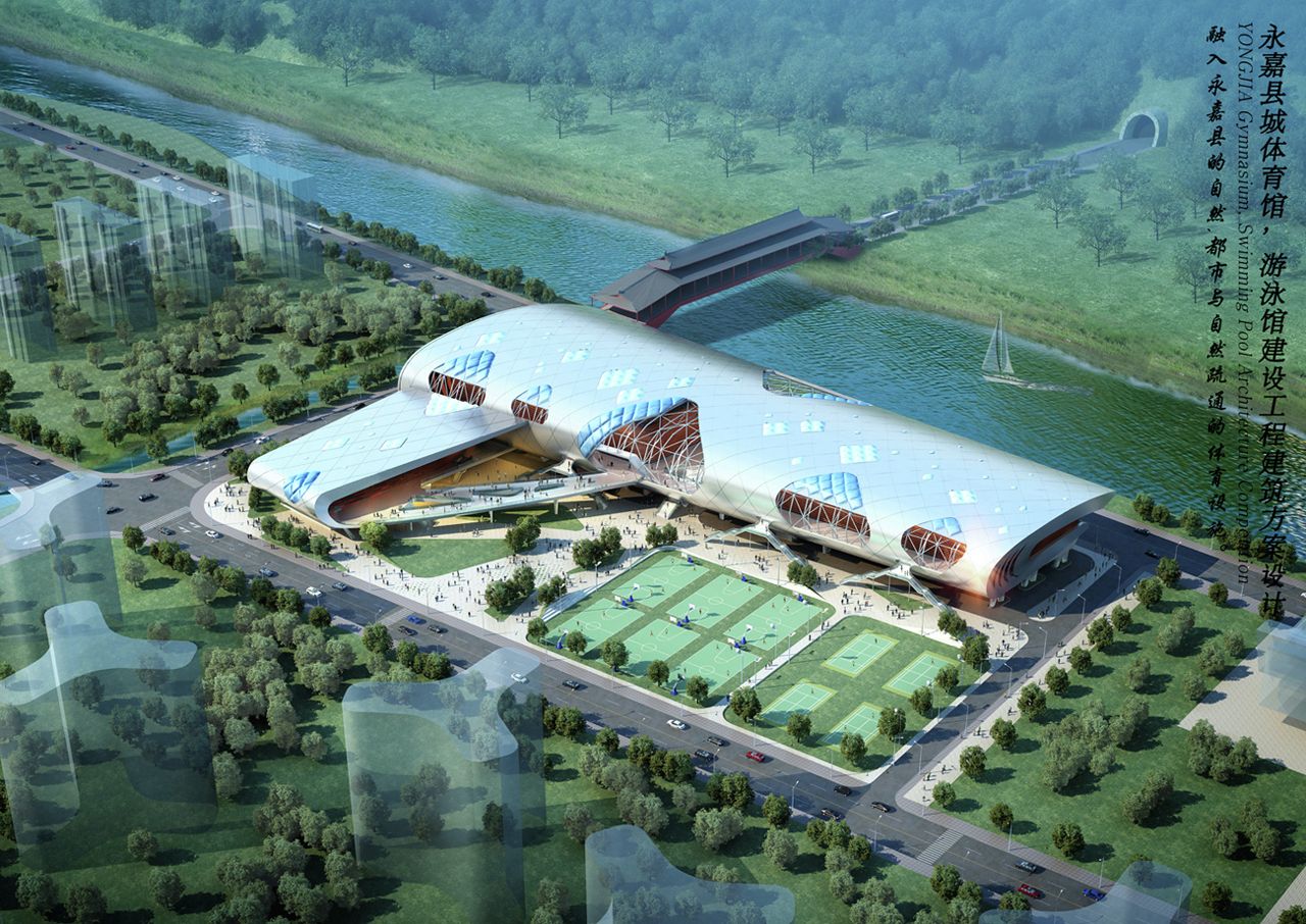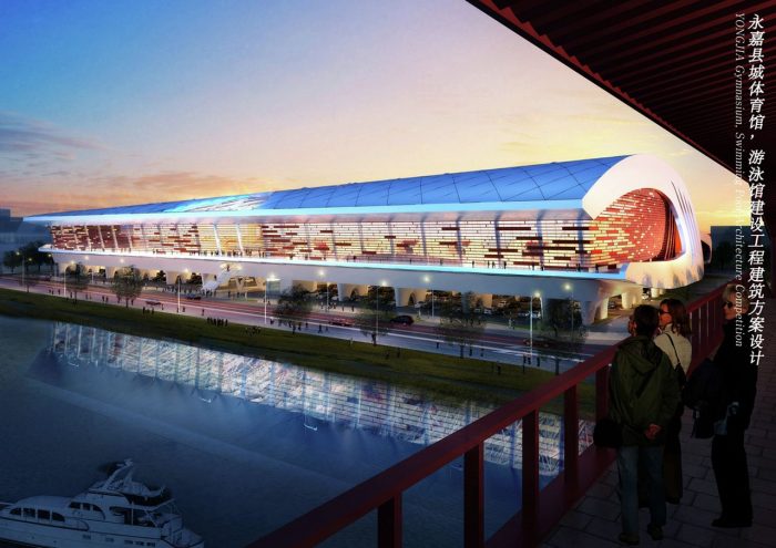 Vaguely remeniscent of Paul Andreu’s Roissy Airport in form, this smart looking building is Idea Image Institute Architect’s design for a new gymnasium in Yongjia, China.