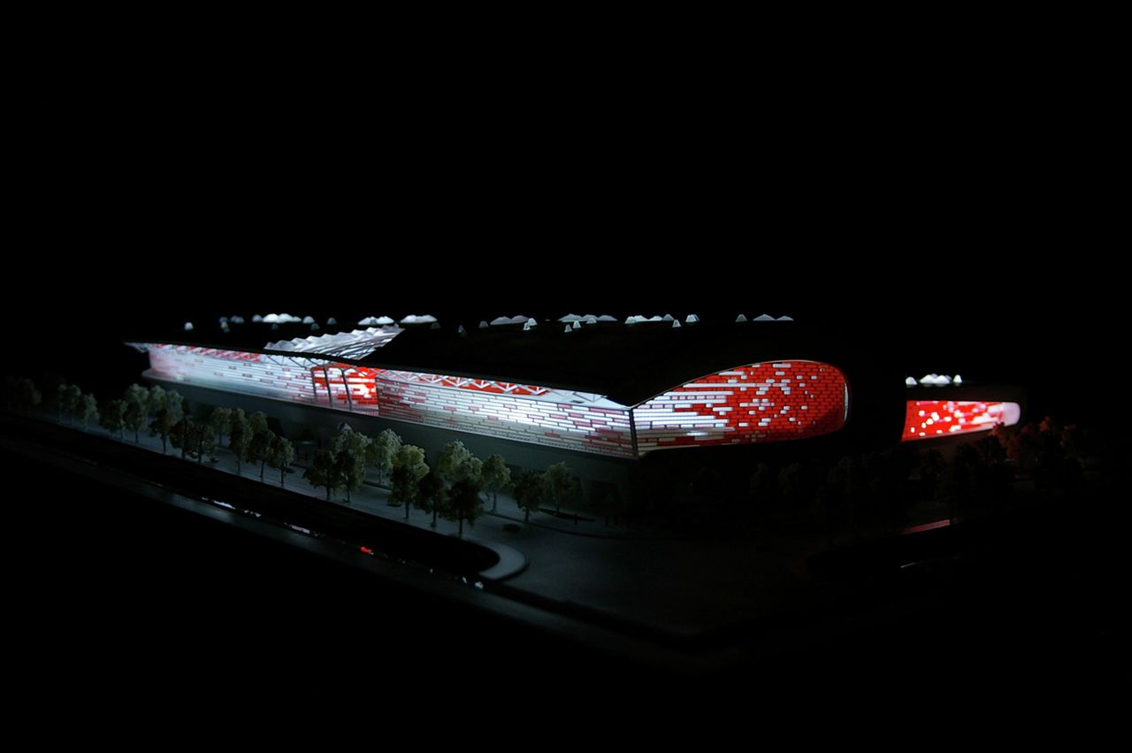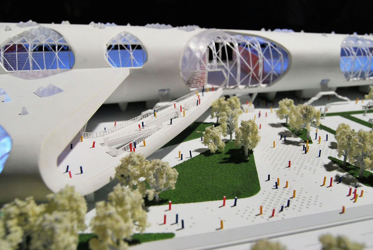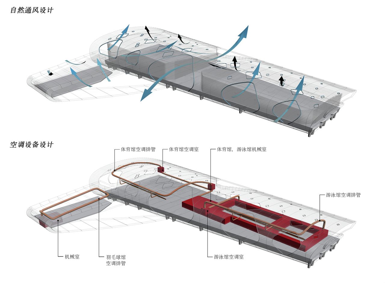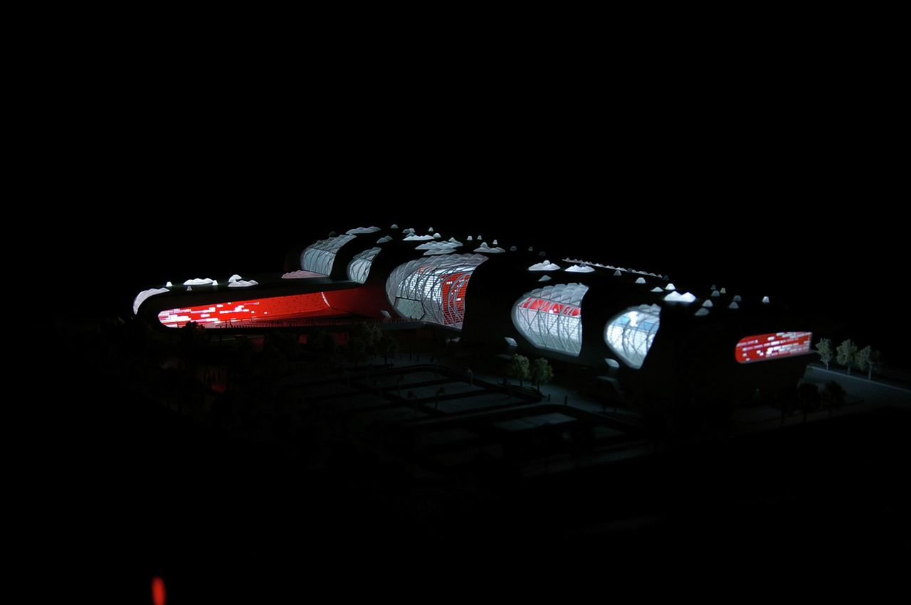 Vaguely remeniscent of Paul Andreu’s Roissy Airport in form, this smart looking building is Idea Image Institute Architect’s design for a new gymnasium in Yongjia, China.