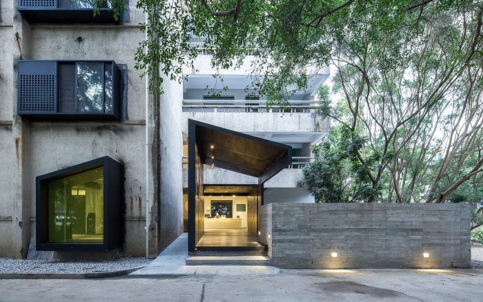 Designed by O-OFFICE Architects, Youth Hotel of iD Town, on the hilltop of the seaside valley, was originally served as one of the dormitory building in Honghua Dying Factory’s residential area, representing the settlements of the first batch of immigrant labors after the open-reform policy and industrialization that first took place in Shenzhen.