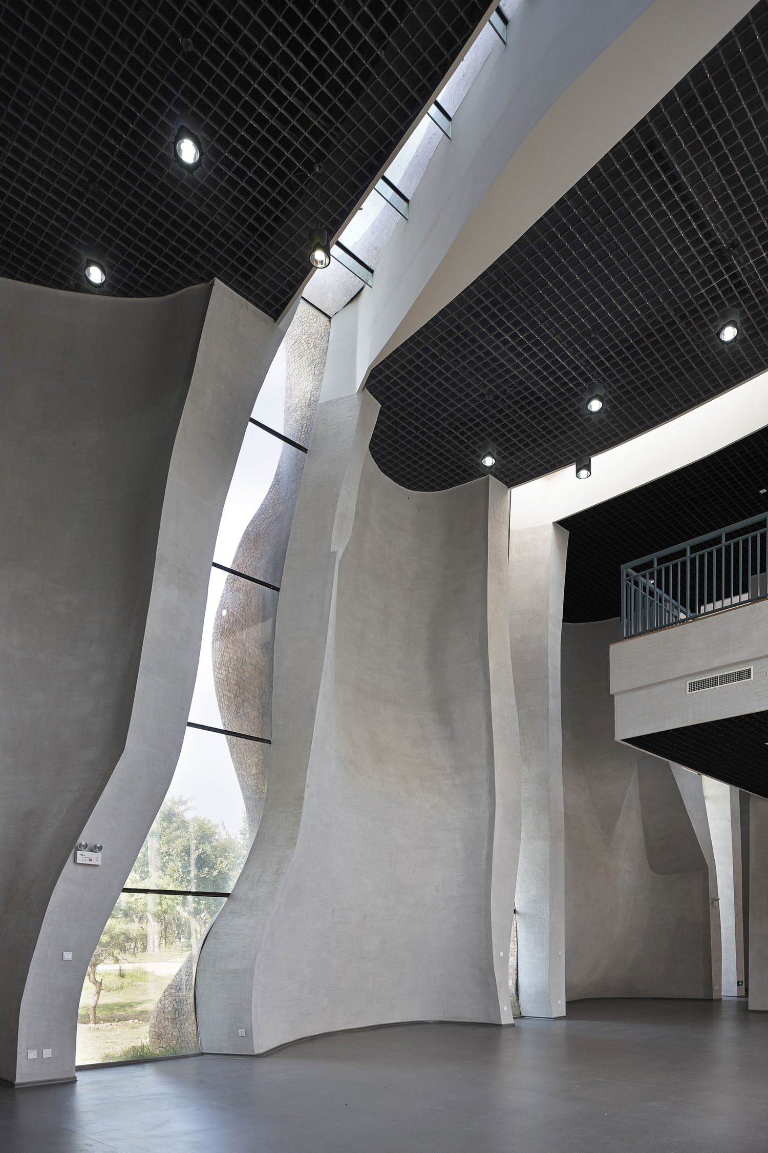 Yu Qingcheng is a world famous original clay sculpture artist who is renowned in China and oversea, the unique style strike out a new line for himself. To describe this design with the emotional word is “hold mud”, rational words is “manifold” The thinking is the main idea of the designer in recent years, he put forward a new concept of “manifold”. From first to last, the building is full of movement and has two or more different forms at the different ends, the form is not a result but a process, a continuous flowing and changing physical space, a process from static to dynamic, a temporal-spatial evolution process. A body growing process, a non-focus building, a geometrical composition from linear to nonlinear changes with both topology and fractal characteristics.