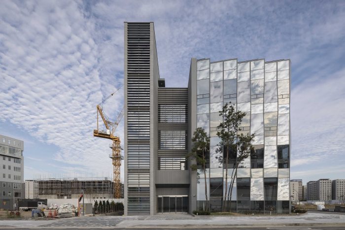 The site of the new building is located in the north-east corner of a crossroad, D17-7, Magok district, Gangseo-gu, Seoul, looking toward south and west which is disadvantageous location condition as an office. In addition, as it is close to relatively big scaled sites, it seems that the building may look small. Despite that, the neighboring land condition that is completely empty without other buildings enables the architect to imagine freely.