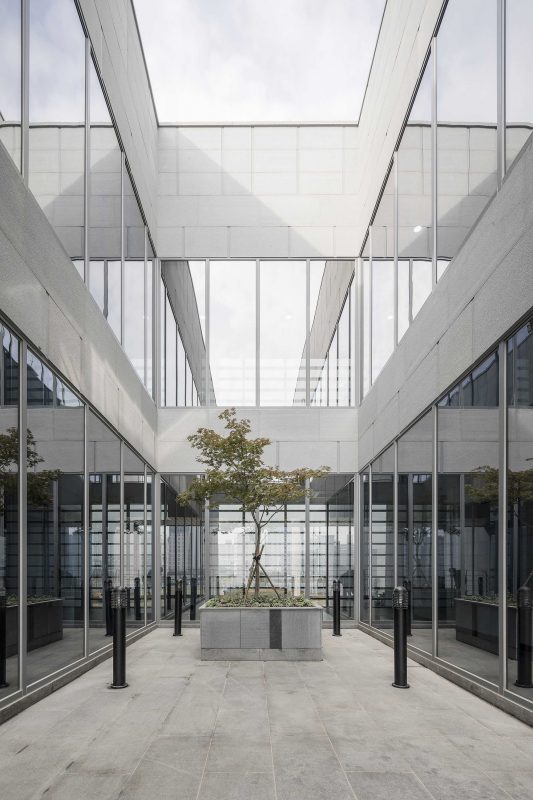 Designed by MMKM associates, In April 2015, Yuhantechnos Headquarter Co., Ltd. a middle-sized company providing IT solutions of logistics distribution has commissioned a new head office building project. To meet the client, when I visited the office located in an apartment-type factory in Mullae-dong, I found the typical problem of the apartment-type factory that as the width and depth of building is long and the ceiling height is low, the working environment of workers in the center of business space is becoming poor.