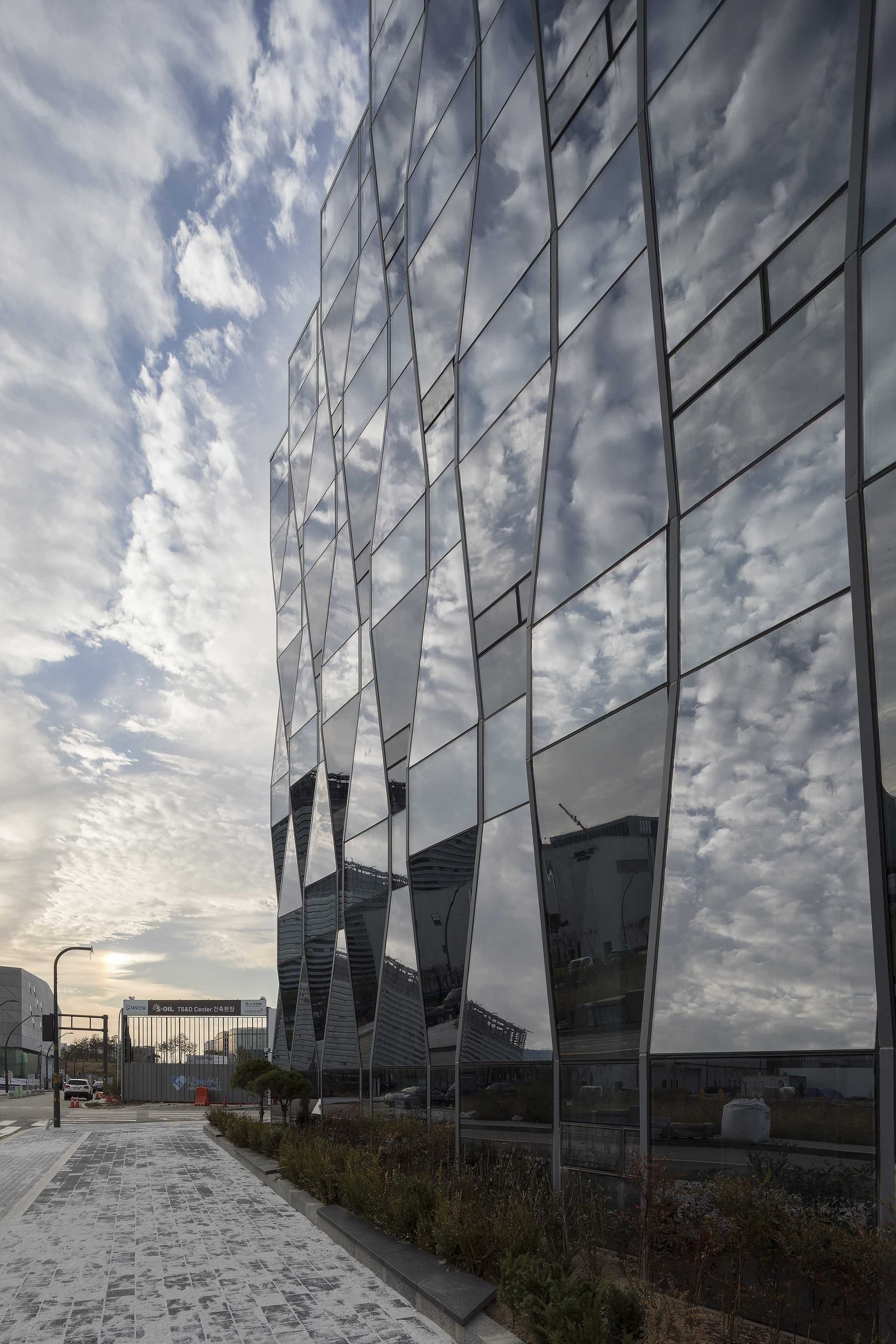 The site of the new building is located in the north-east corner of a crossroad, D17-7, Magok district, Gangseo-gu, Seoul, looking toward south and west which is disadvantageous location condition as an office. In addition, as it is close to relatively big scaled sites, it seems that the building may look small. Despite that, the neighboring land condition that is completely empty without other buildings enables the architect to imagine freely.