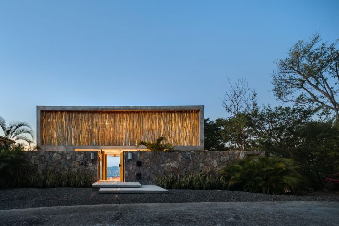 The architectural piece uses essential materials such as concrete, steel, local limestone and bamboo. This mix of materials and local construction techniques gives the house a strong modern and tropical personality, successfully adapting to its context and being in harmony with nature.