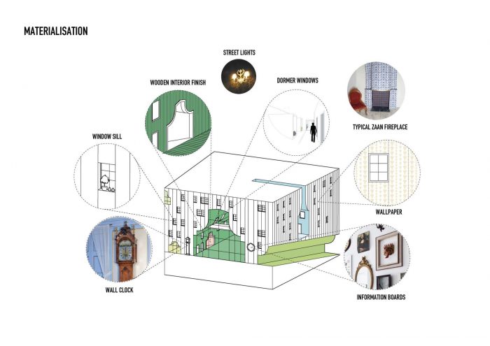 “We started with a compact volume and then turned the typical Zaan house inside out, creating an urban living room“, said MVRDV co-founder Jacob van Rijs. “On the exterior facade, a wallpaper motif contrasts with interior spaces clad in the green wooden facades so typical of the Zaan region“.