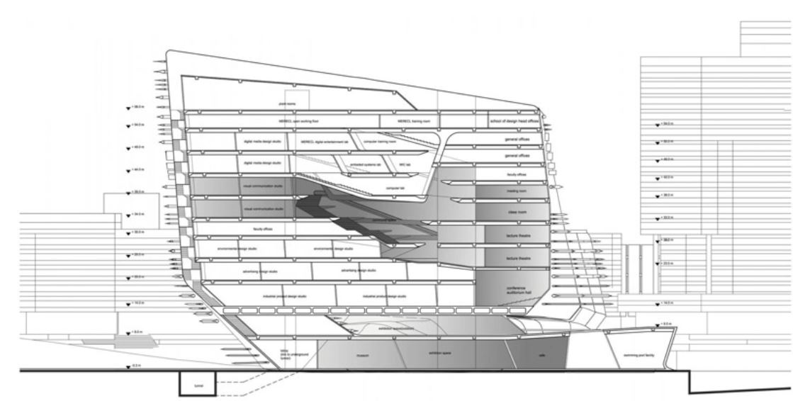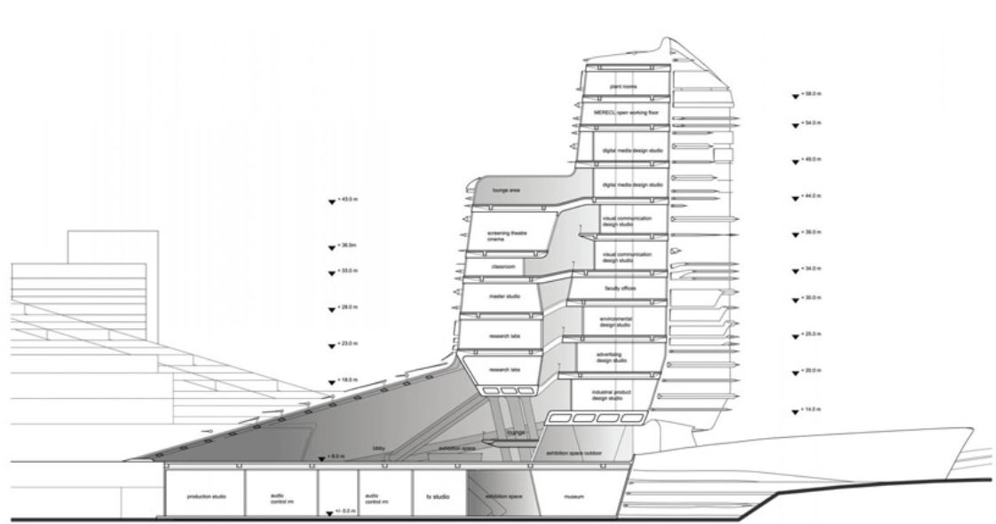 Architect Zaha Hadid Architects warmly congratulated the University. “We would like to thank all of those who have supported this project, particularly Victor Lo, HKJC sponsors Brian Stevenson and Douglas So and from the Polytechnic University Marjorie Yang, Timothy Tong and Philip Chan,” said Hadid via a video message. “It is a very important project for us, particularly because it’s in Hong Kong, the city where my career started. I have always had tremendous affection for it,” explained Hadid. More about the tower design comes from Zaha’s website.