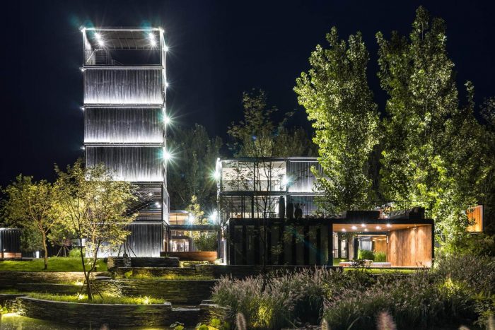 Product Description. The project is located within the historic site of the Great Wall. The modular containers were chosen to form the main structure body. Locally sourced woven reeds, used for the outdoor corridor ceilings, and recycled timber decking create a natural aesthetic that represents the traditional cultural heritage of the site.