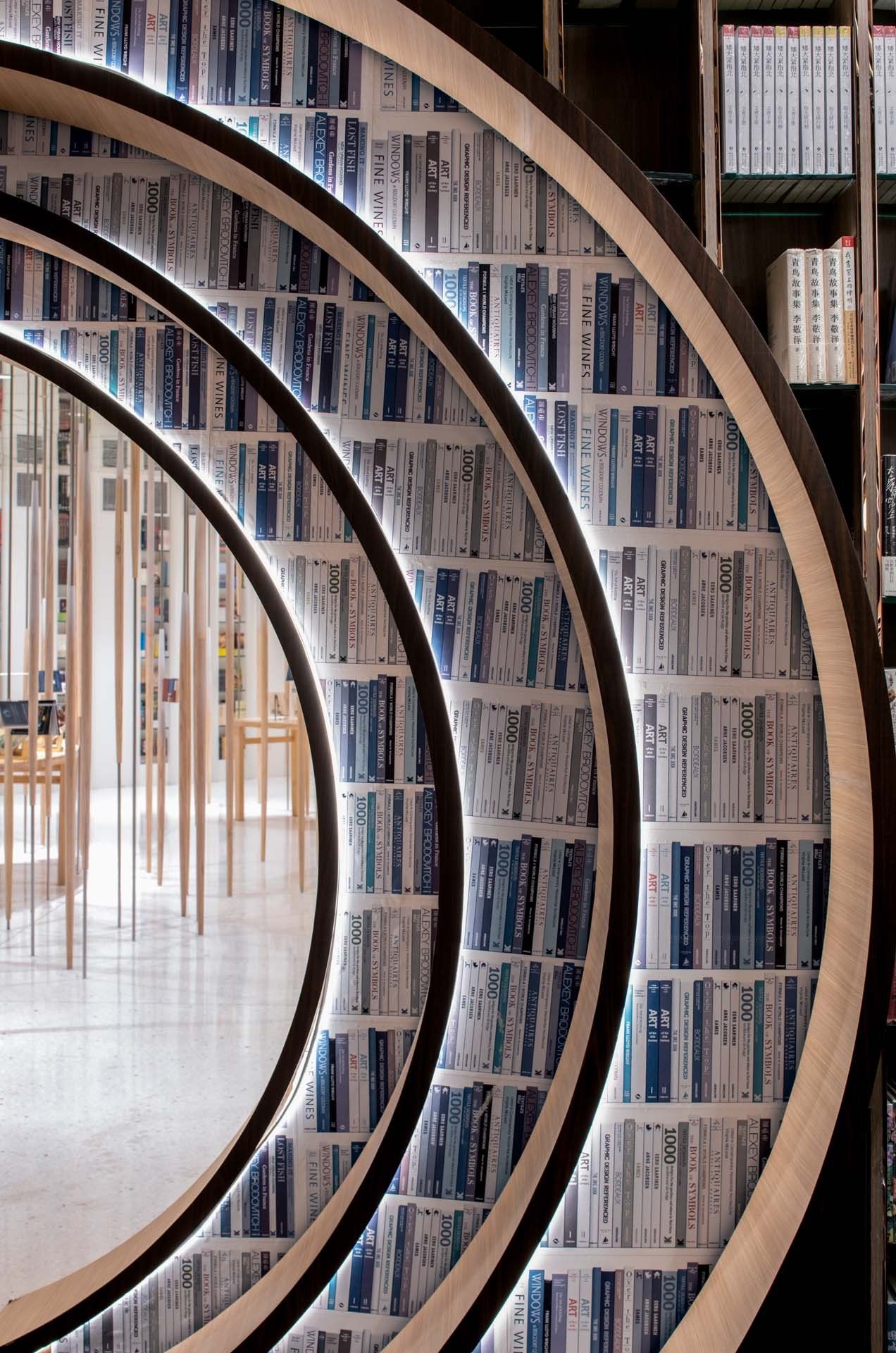 The bookshelvesare both a canvas and a wall, making the door porchlike a painting unfolding gradually. In the doorway, itis faintly visible the depth of the space, which makes people can’t help but walking into the bookshop for exploration.