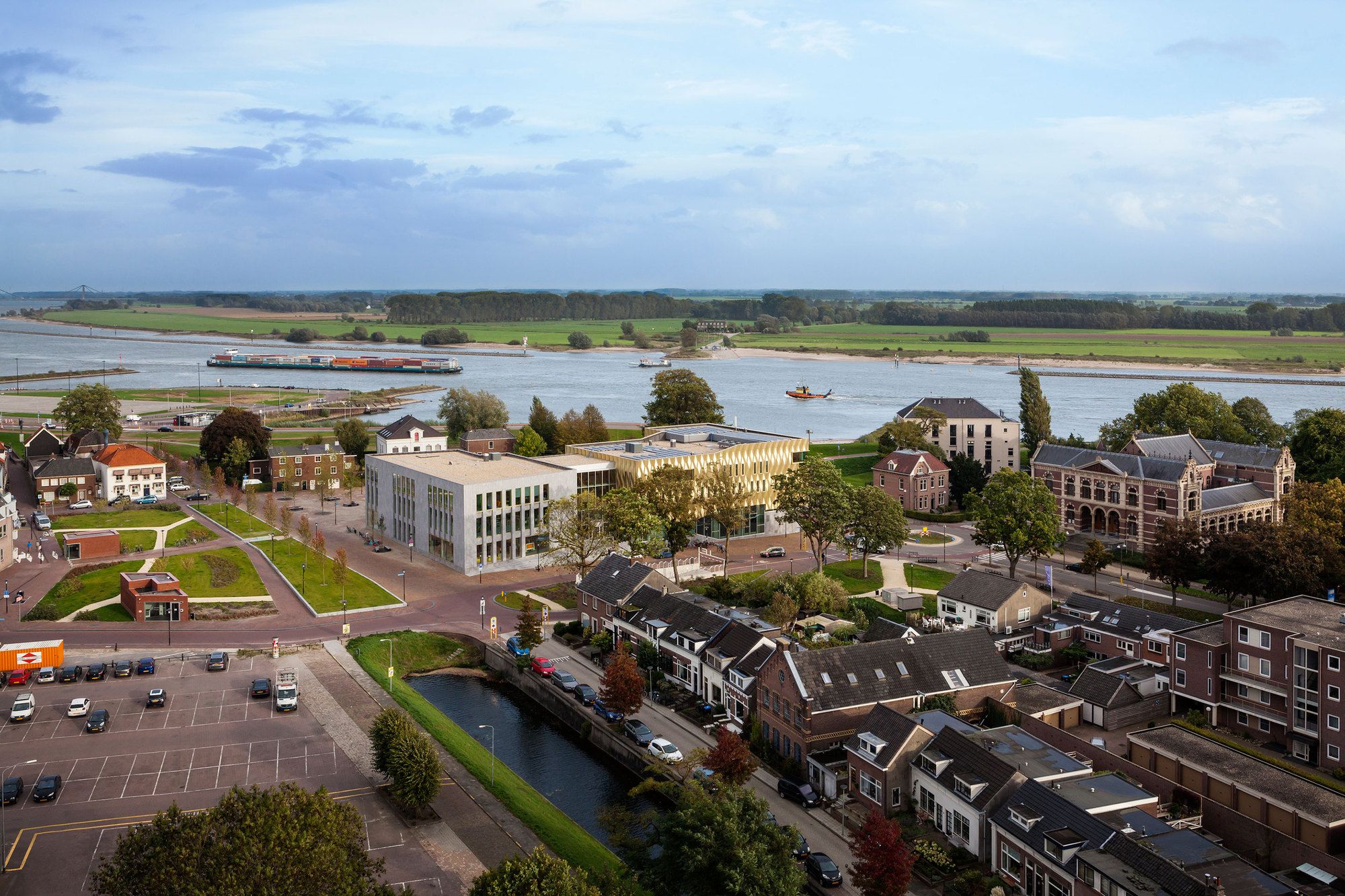 The project is very meticulously embedded between the river, the historic city center and the formal Rechtbankstraat. What carries the plan is the raised culture podium: a new plaza with the volumes of the arts center (Zinder Education) and the public library. The podium exploits the differences in height of the venue, transforming it into an attractive recreational area that will function as an extension to the culture building – blurring the boundaries between inside and outside. The differences in height are transformed into usable spaces and an intimate viewpoint overlooking the river is created. A four-story, underground car park ensures that the former parking area on the Waal can, in future, be used for events. By separating the entrance to the car park from the building and also thereby giving it shape, the city center gains a new, welcoming entrance.