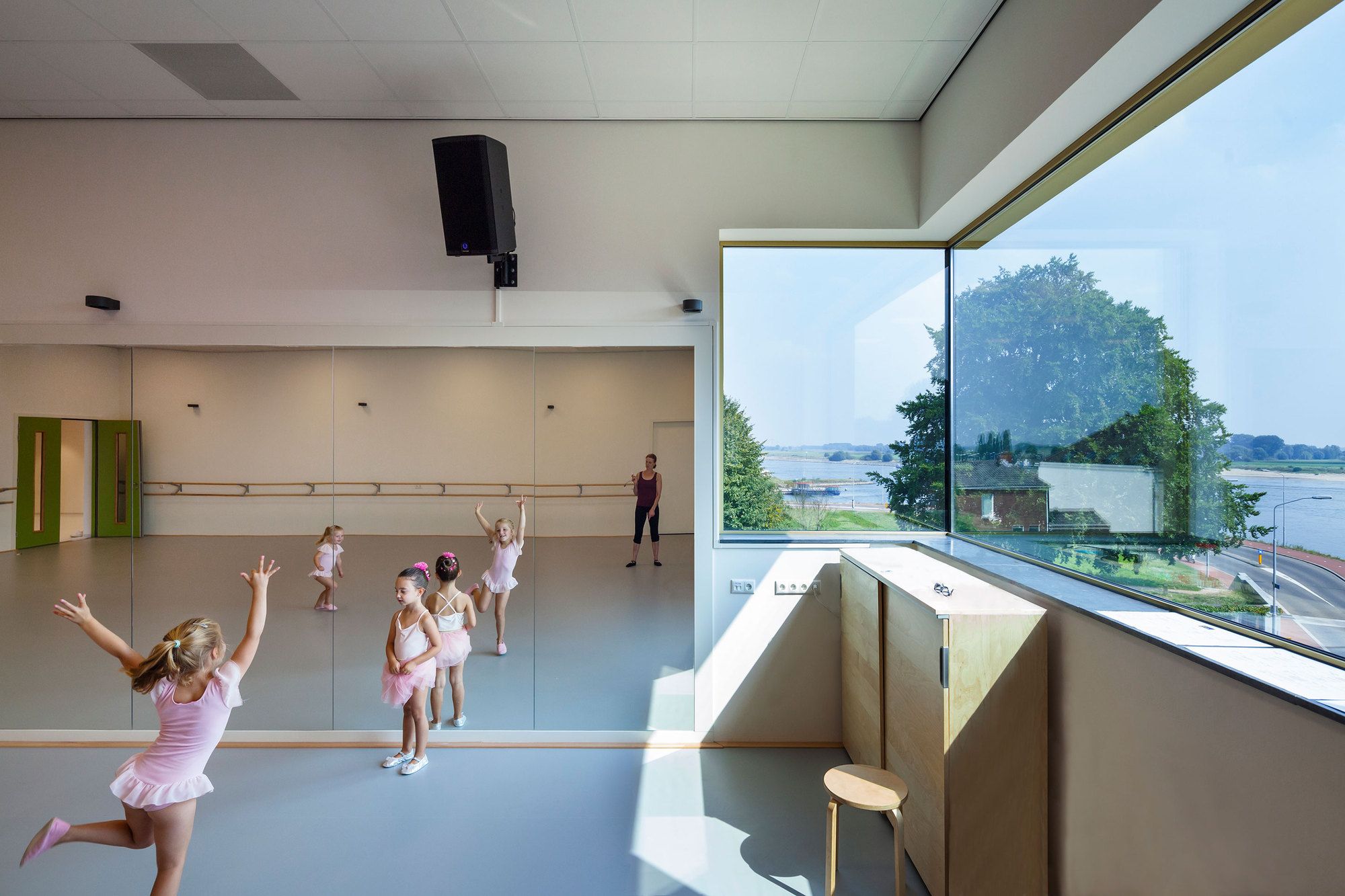 Designed by De Zwarte Hond, Tiel’s new culture building, “Zinder”, is situated in the city center and the river Waal. The new culture cluster pulsates and stimulates and invites the inhabitants of Tiel and the surrounding area to participate. Music or dance lessons, follow a painting course, borrow books, rehearse with your band and go to a pop concert, it’s all happening in Zinder. De Zwarte Hond, commissioned by Koninklijke VolkerWessels, was responsible for the architectural, urban and landscape design. The municipality of Tiel is actively boosting the attraction of its city. The qualities of the river Waal will be exploited more fully and the relationship between the city center and the river reinforced. The level of facilities is being raised and access to the city center will also be improved. Zinder is an important component of these plans.
