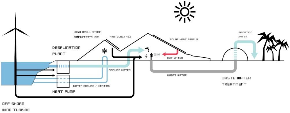 Zira Island benefits from the fact that Baku is “The wind-swept city”. By harvesting the wind energy through an offshore wind farm, Zira Island will have its own CO2-neutral power supply. The wind turbines will power the entire island, transforming the platforms and foundations of the existing offshore oil industry and replacing the forest of oil towers in the horizon of the Caspian Sea.