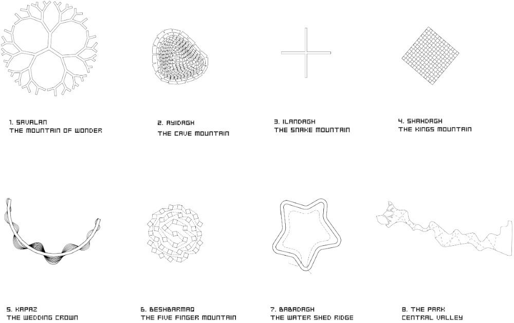 The Seven Peaks of Azerbaijan proposes an architectural landscape derived from its natural landscape. This new architecture not only recreates the iconic silhouettes of the seven peaks,